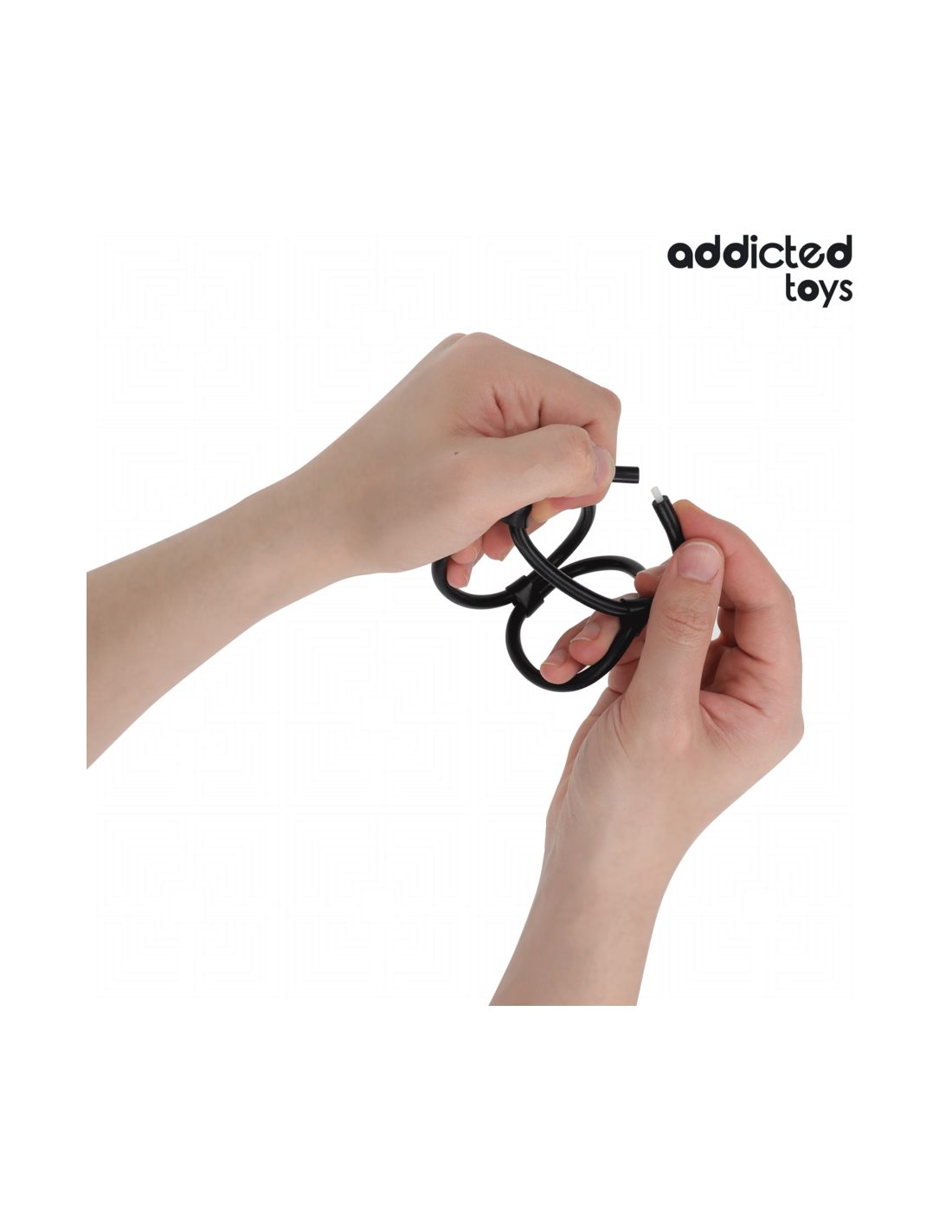 The Addicted Toys Triple Cock Ring is designed to provide a firm, comfortable fit, helping to improve sexual performance and prolong erection. Thanks to its design of three rings of different sizes, it allows for versatile placement, adapting to different areas for a more intense and pleasurable experience.