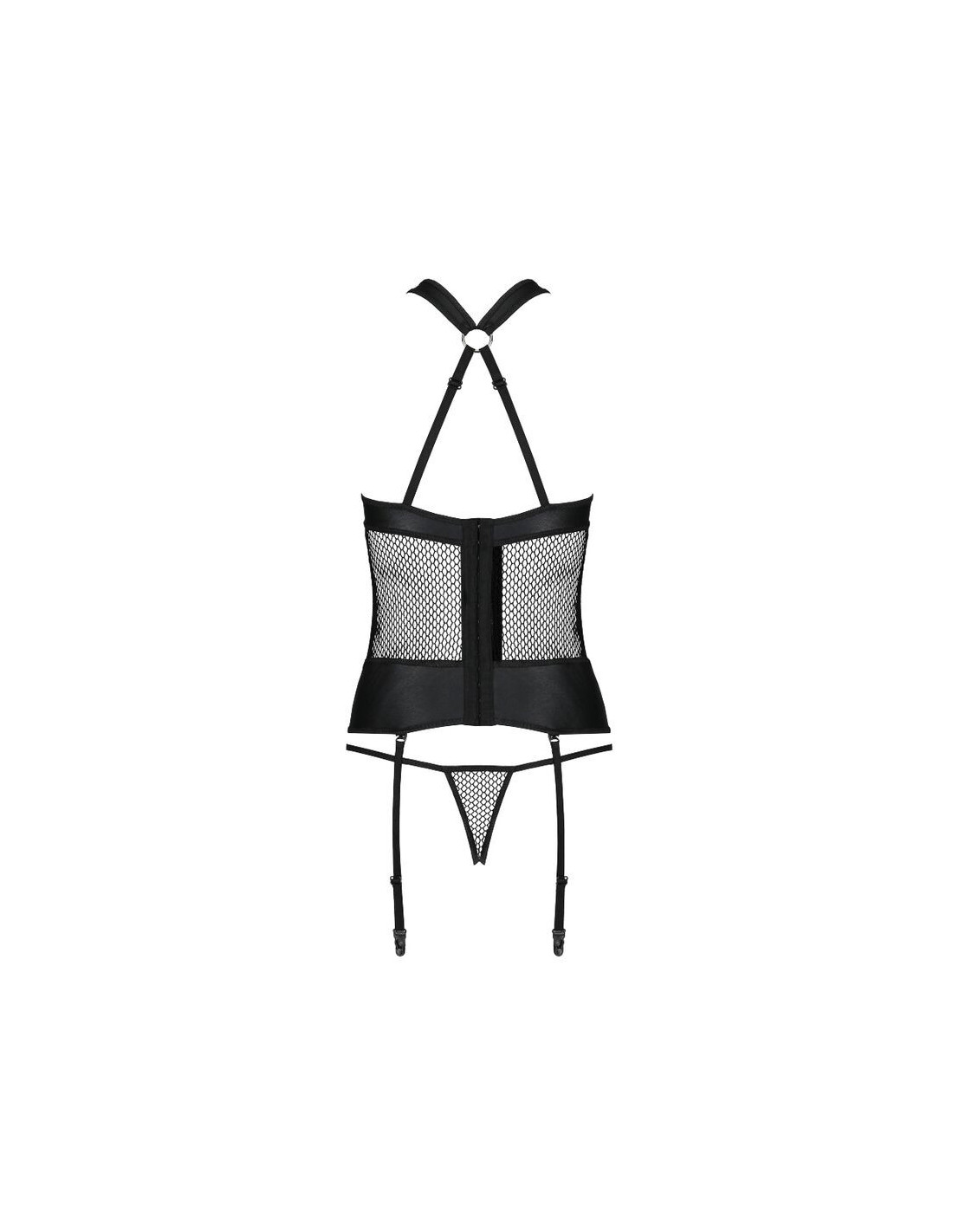 The Amanda corset is an innovative combination of leather behind a sensual mesh, the task of which is not only to seductively reveal the most feminine, but also to emphasize them. The golden joints in the shape of wheels give all the character.
