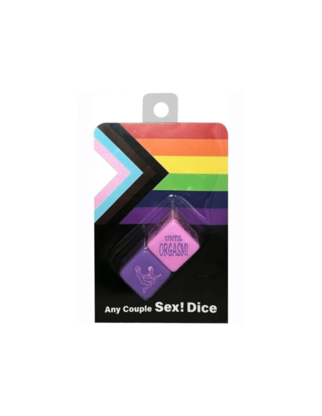 The Sex Says game works for any couple. The purple die tells you what to do and the pink die determines how long you have to do it. The roller decides who takes each position and whether or not it includes a toy.