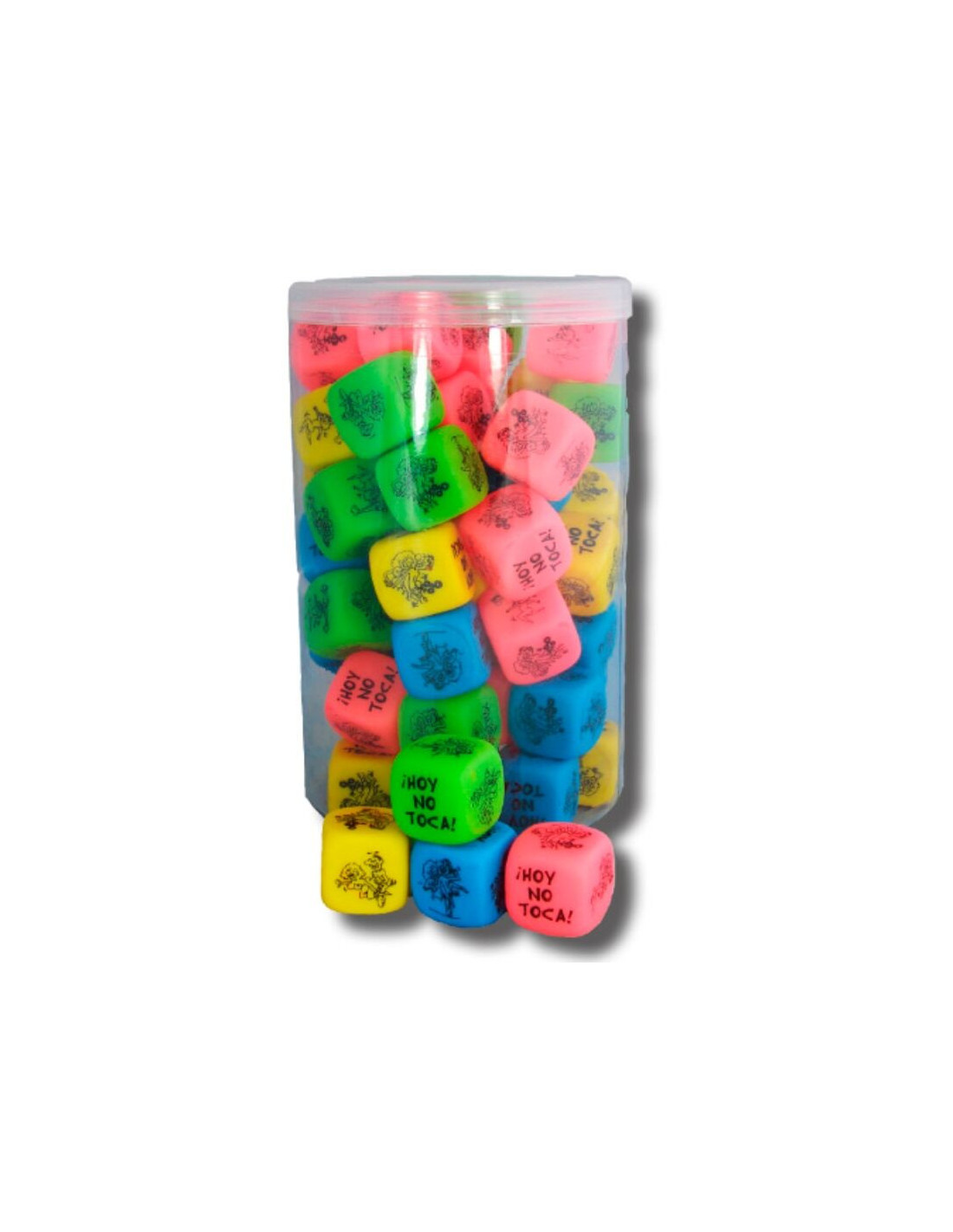 DICE OF PASSION! What position do we take today? Enjoy the chance of the dice, a great solution for sexual indecisions. These dice are 25 mm FLUORESCENT YELLOW-GREEN-PINK-BLUE COLOR. You will be surprised by its simplicity, you can take it anywhere and anywhere it will give you many joys. GIVE YOUR IMAGINATION A FREE REIN.