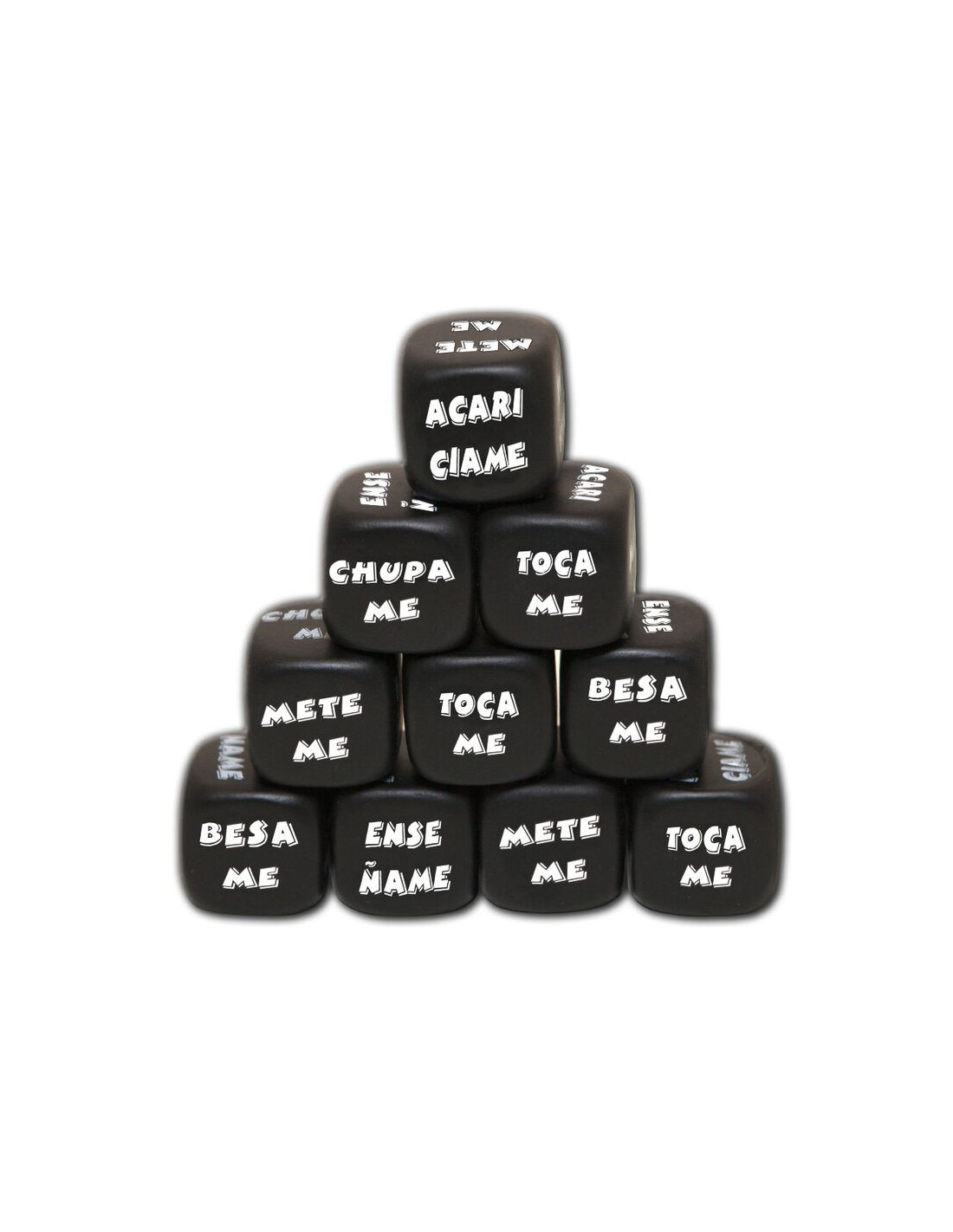 HIGH QUALITY 25 mm HARD BLACK DICE. PASSION DICE! WHAT ACTION DO WE DO TODAY? EAT ME-KISS ME-TEACH ME-TOUCH ME-SUCK ME-SQUEEZE ME. Enjoy the chance of the dice, a great solution for sexual indecisions. They will surprise you with their simplicity, you can take it anywhere and any place they will give you a lot of joy.