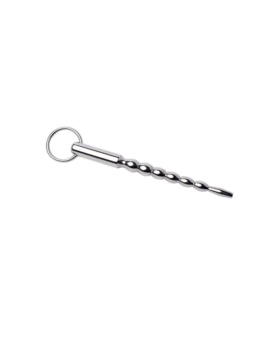 Urethra dilator up to 7mm with balls and curved tip, made of a single piece of stainless steel.