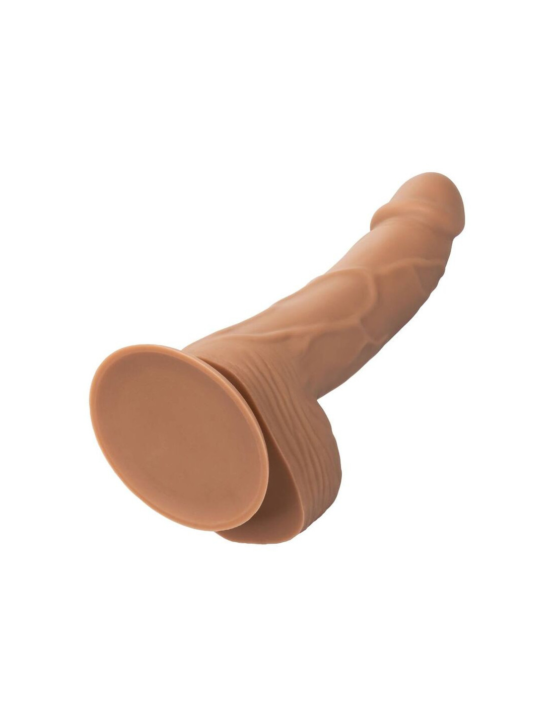 Youre all about the size of your pleasure and the CalExotics Silicone Studs 6 has arrived to deliver a pounding experience fit for any size queen. The real-feel dong is crafted with an ample 6-inch shaft, realistic flexible design, and suction cup base. Deliver the pleasure youve been craving with a 6-inch long dong with sensual tip, textured shaft, and life-like balls. The textured shaft has a firm, yet flexible feel sure to deliver a truly realistic penetration experience. The flanged base has a sturdy suction cup that can be used in a harness or mounted to a flat surface for sensational hands-free fun.