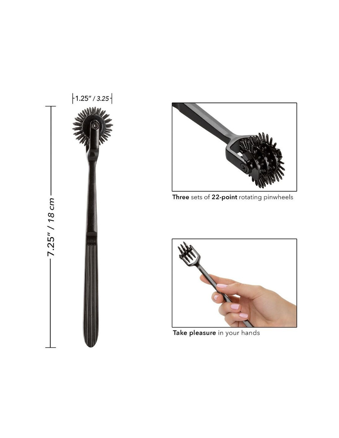 Indulge in thrilling pleasure with the beautiful Scandal® Trio Pleasure Wheel, a teasing pleasure wheel with three 22-point wheels. Made from a heavy duty, non-tarnishing nickel free Zinc alloy for the ultimate in luxurious excitement and an amazing feeling in hand. With every roll across your wanting skin, this passionate wheel will thrill, excite and elevate your every intimate moment.
