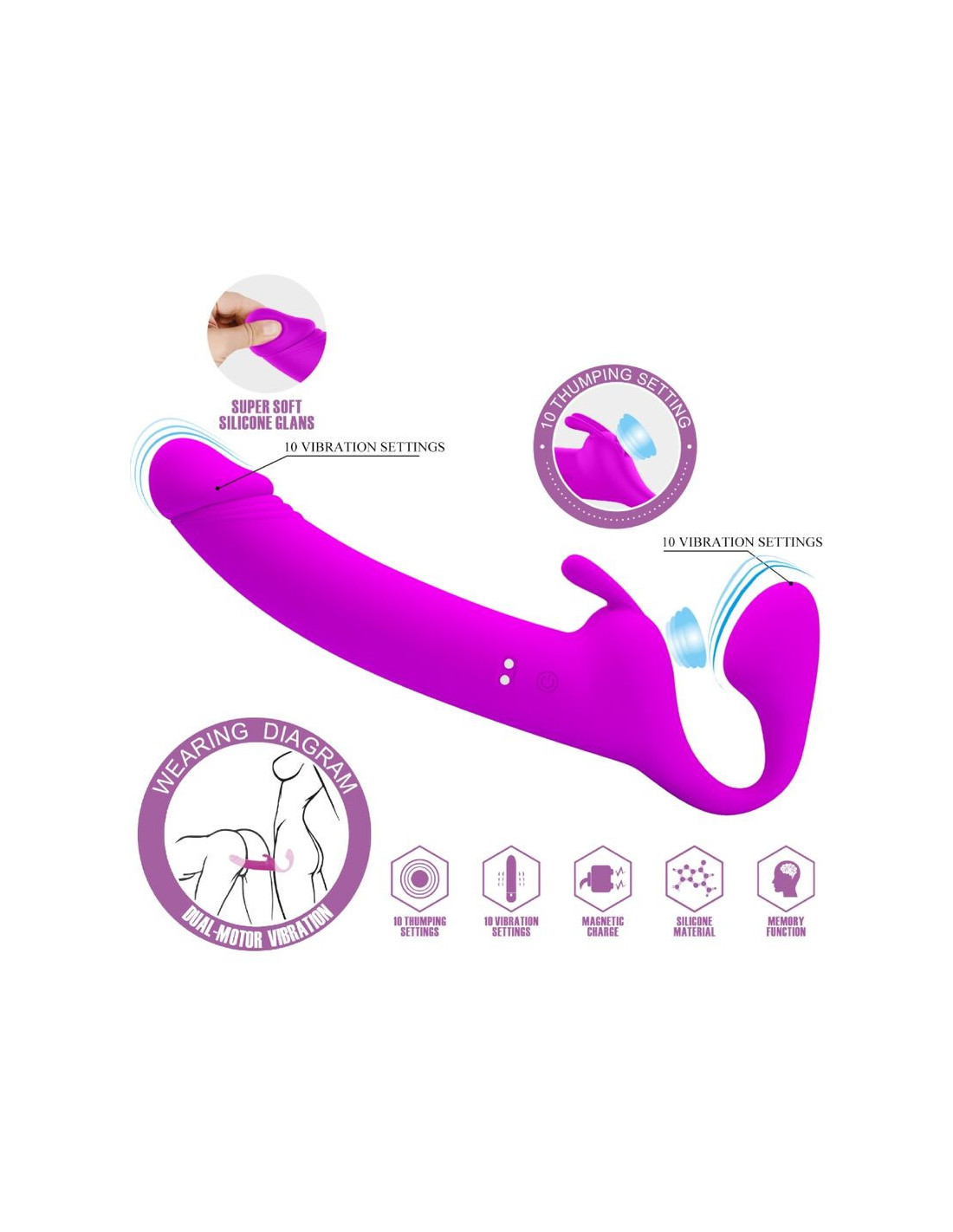 The Pretty Love Vibrating Strapless Strap-On enables you to play harness-free for a more seamless experience. Whether you are planning for intimate girl-on-girl excitement or treating your man to a stimulating pegging session, it is bound to satisfy you both.
