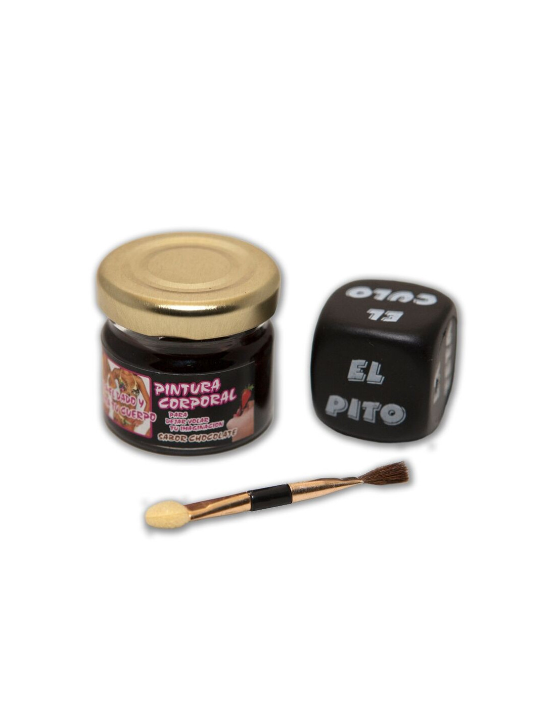 THIS GAME IS A VERY DELICIOUS CHOCOLATE FLAVOR EDIBLE PAINT POT. IT INCLUDES A BRUSH AND A DICE OF PARTS OF YOUR BODY TO LET YOUR IMAGINATION FLY AND SPEND AN UNFORGETTABLE NIGHT OF LUST.