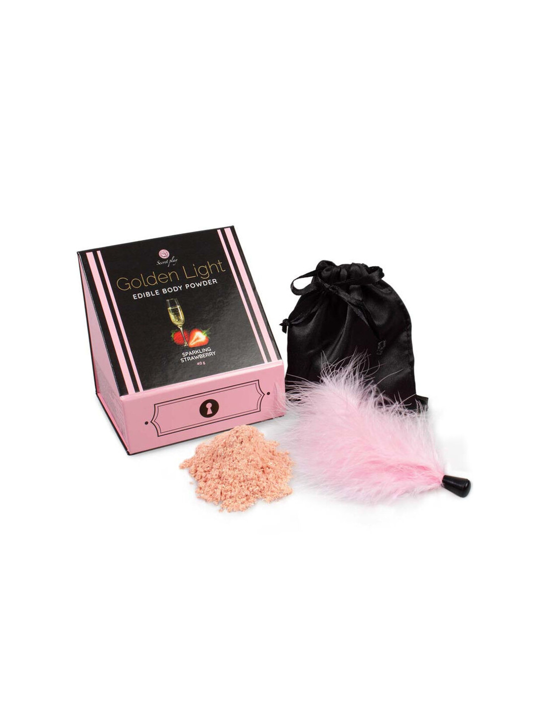 SECRETPLAY - GOLDEN LIGHT KIT SPARKLING STRAWBERRY EDIBLE POWDER and FEATHER