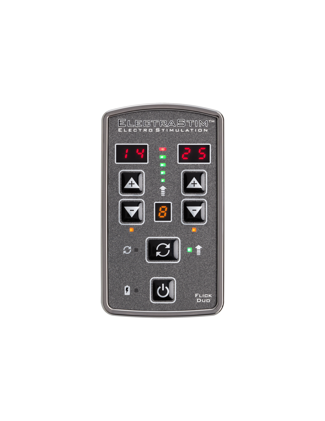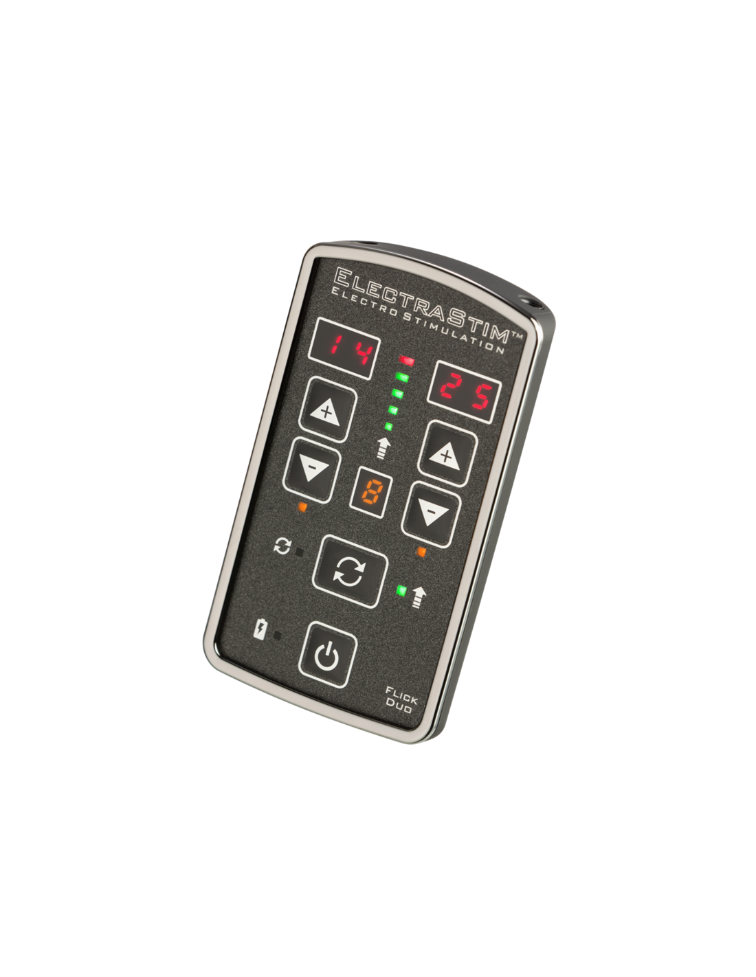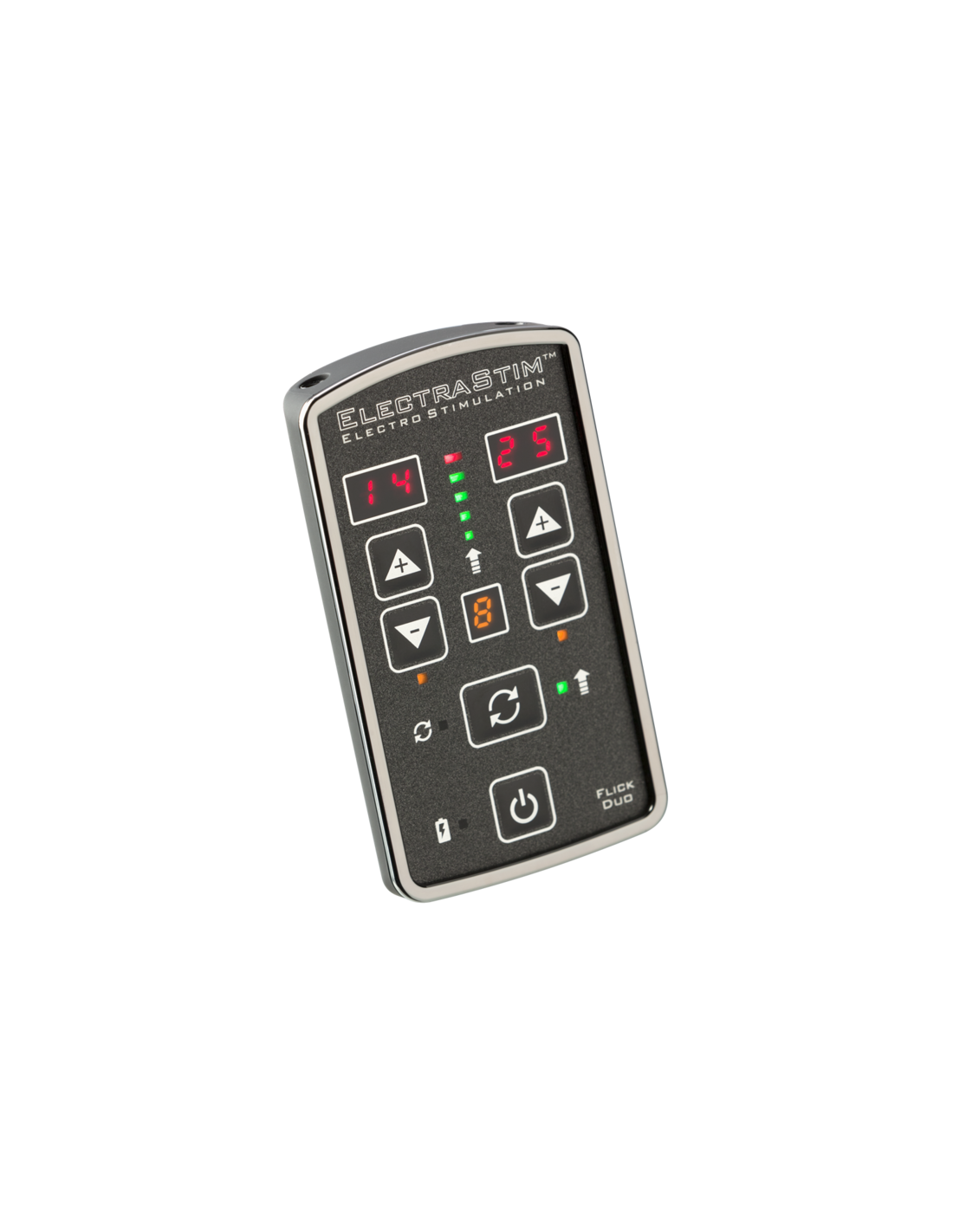 Ideal for couples and power players who want to use more toys at the same time, Flick Duo can power up to 4 uni-polar or 2 bi-polar electrodes at once. Each channel is controlled independently, giving you more control over the sensations you feel and improving shared stimulation with your partner.