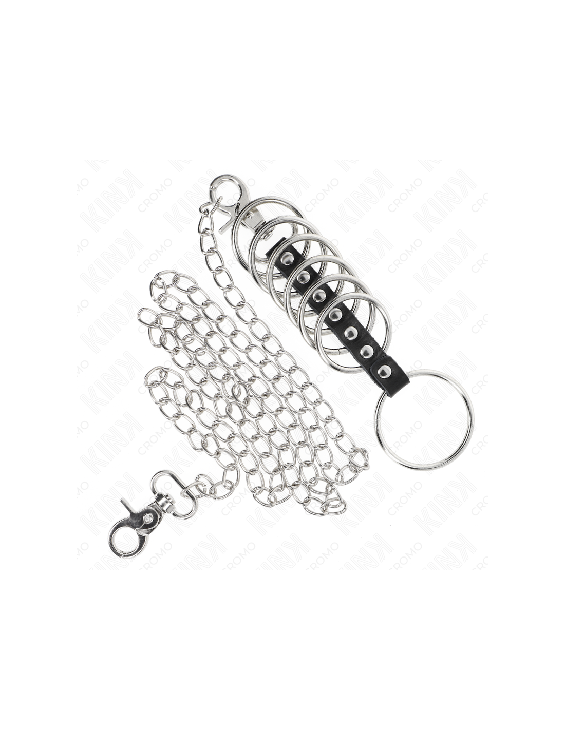 KINK - 7 METAL PENIS RINGS 3.8 CM TO 5 CM CONNECTED WITH LEATHER AND METAL CHAIN 100 CM