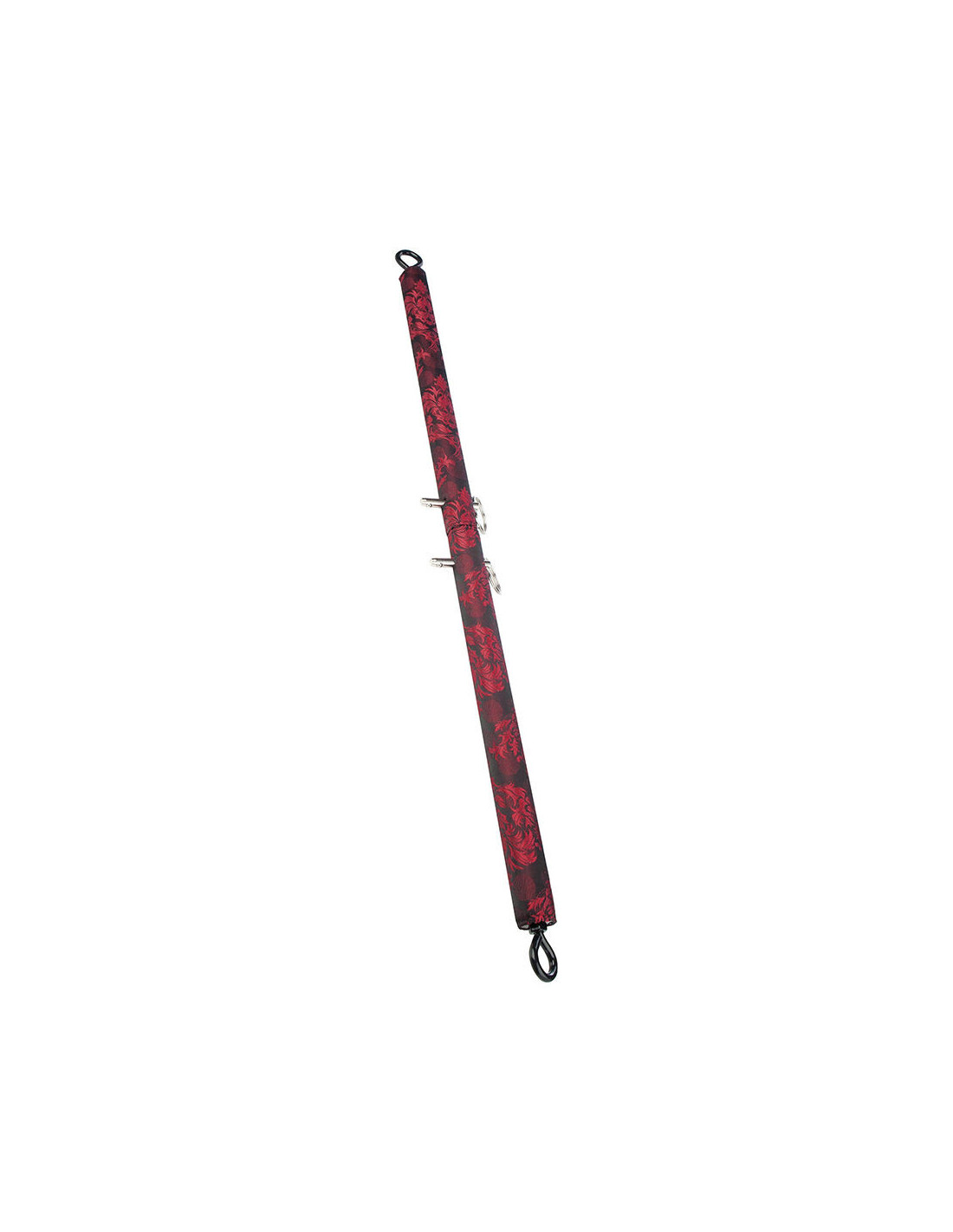 Relinquish control and dive into desire with the Scandal Spreader Bar. This sturdy, adjustable metal bar is wrapped in luxurious red and black designer fabric and features universal O-rings to connect your favorite cuffs. With an extendable width of up to 36 inches, it’s designed to hold your legs open in the most seductive positions—perfect for teasing, pleasing, and surrendering.