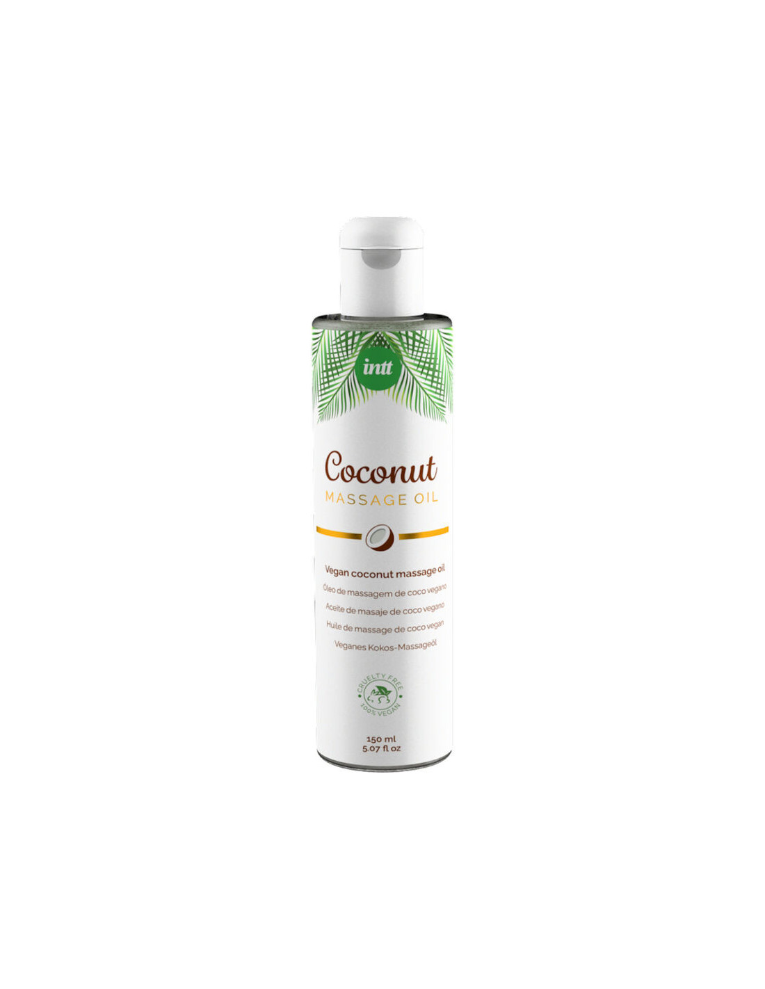 INTT Massage Oil Vegan Coconut is a highly slippery, sweet coconut-scented massage oil that leaves skin velvety soft for a relaxing or erotic body massage.