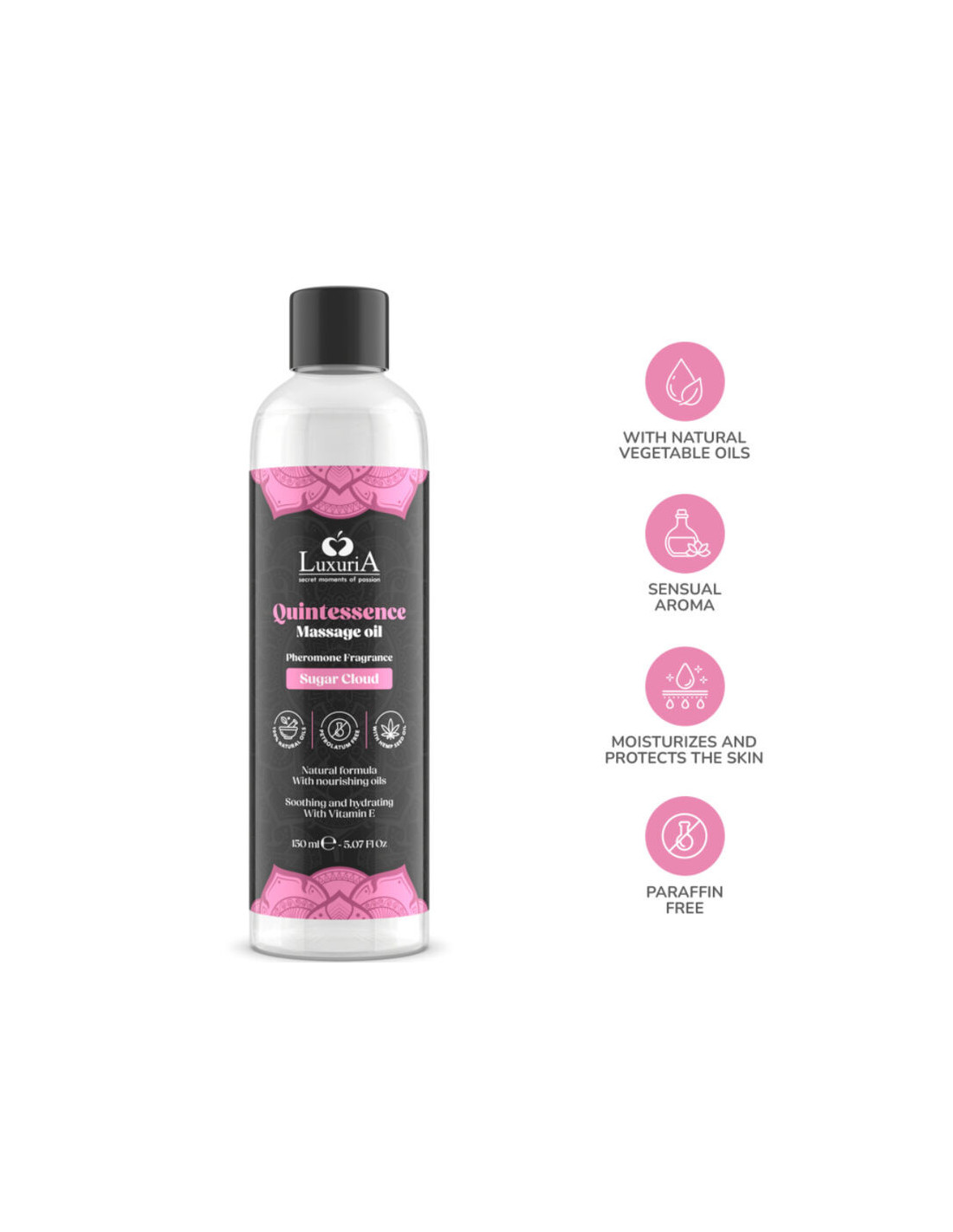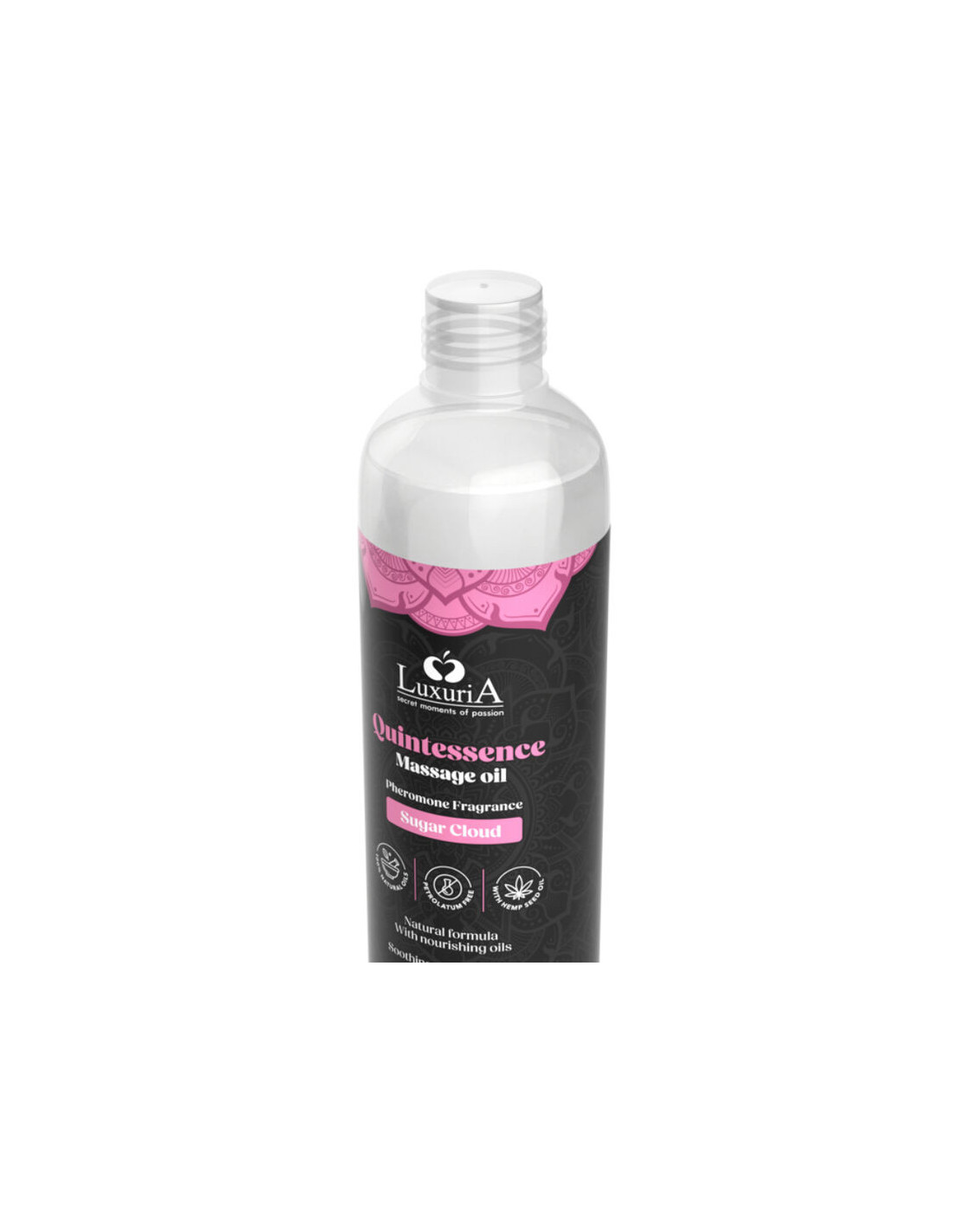 INTIMATELINEQuintessence Massage Oil, Sugar cloud This is a natural and refined massage oil, enriched with exclusive formulations based on high-quality oils and carefully selected stimulating essences. Its nourishing formula, made with completely natural vegetable oils, combined with sensual aromas, provides intense hydration, leaving the skin soft and fragrant. Free of paraffin, Quintessence Massage Oil will respect and protect the skin. your skin thanks to the presence of hemp seed oil, stimulating your senses with soft notes of icing sugar that will accompany you throughout the massage, guiding you towards the Quintessence of pleasure.