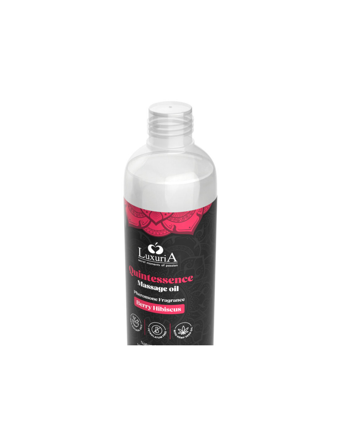 Quintessence Massage Oil, Berry This is a natural and refined massage oil, enriched with exclusive formulations based on high-quality oils and carefully selected stimulating essences. Its nourishing formula, made with completely natural vegetable oils, combined with sensual aromas, provides intense hydration, leaving the skin soft and fragrant. Free of paraffin, Quintessence Massage Oil will respect and protect the skin. your skin thanks to the presence of hemp seed oil, stimulating your senses with soft notes of icing sugar that will accompany you throughout the massage, guiding you towards the Quintessence of pleasure.