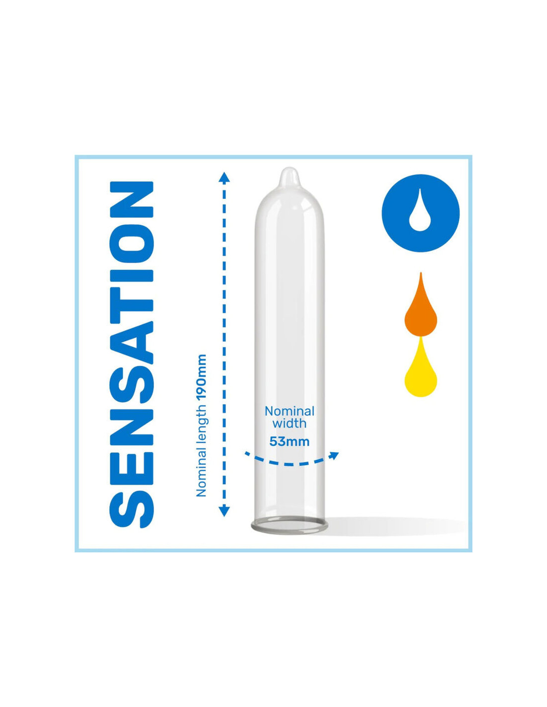 Pasante Tropical condoms offer three exotic flavours; Mango (orange - 48 units), Pineapple (yellow - 48 units) and Coconut (transparent - 48 units). Smooth, parallel and teat-ended condoms.