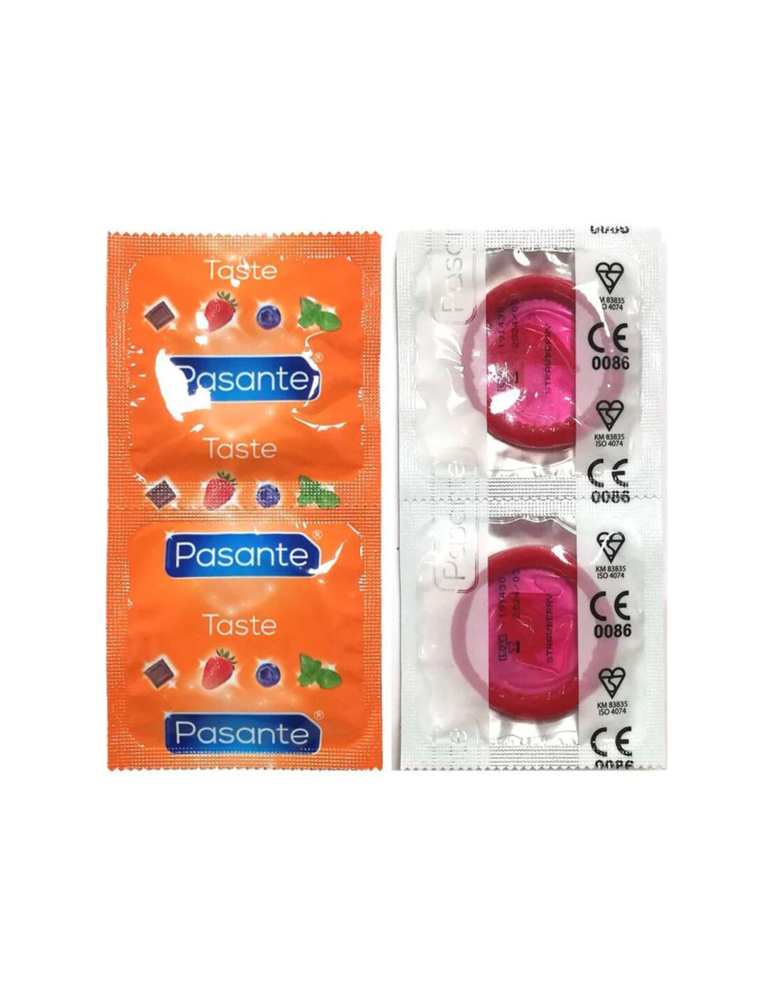 Make love with a completely new flavor. Discover Pasante Strawberry condoms with their delicious strawberry flavor. If the smell of latex bothers you or if you have such a sweet tooth that you get turned on by the tasty aroma of a cake, these condoms are definitely for you! Fruity, fun and colorful, discover how to make sex safe It's also delicious and worry-free. Provoke your partner and make him enjoy all the senses, warm up the atmosphere with these original condoms.