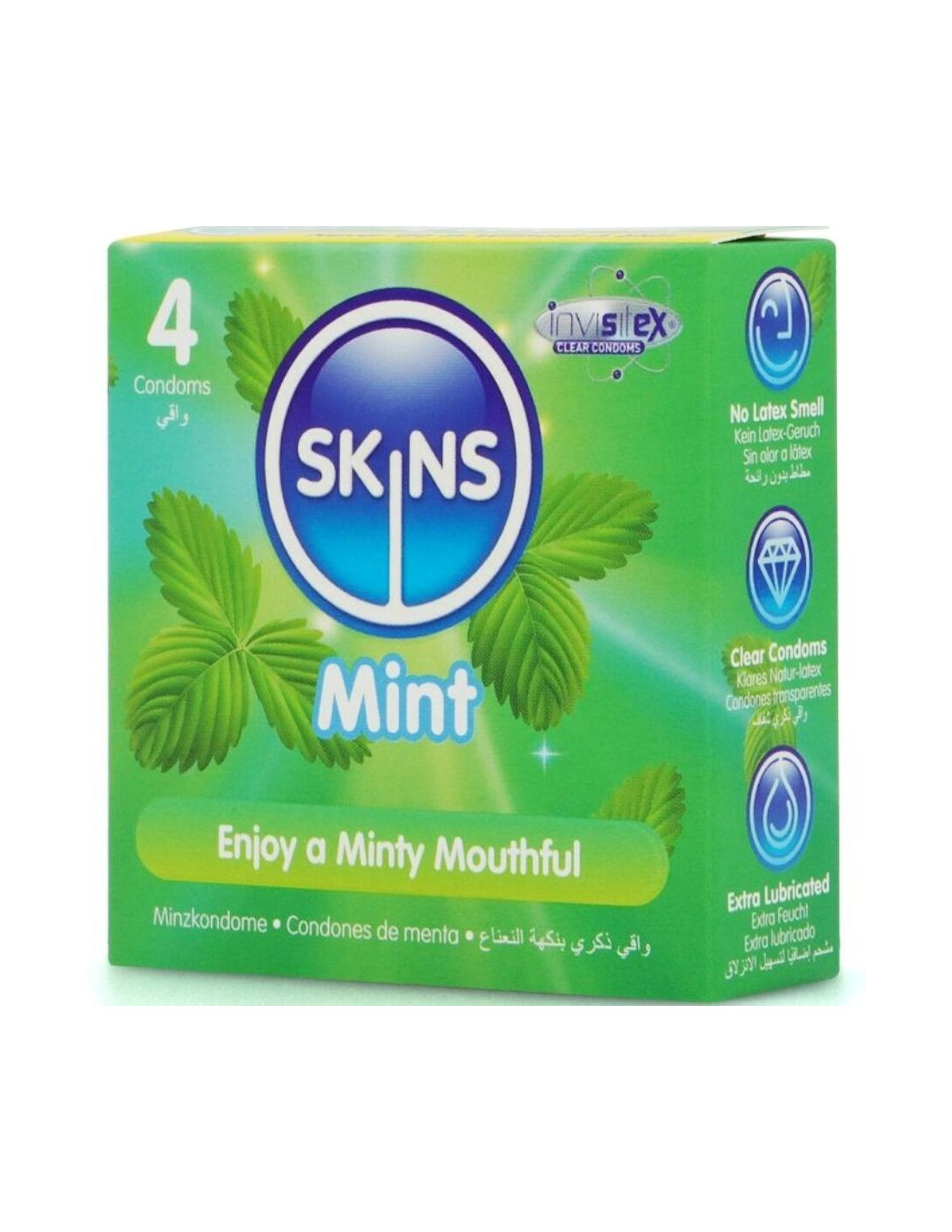 Introducing the Skins Mint 4-Pack - a sleek, retail-ready format that offers up to 33% more condoms per pack than the market leader, delivering exceptional value and standout shelf appeal. Designed for a more pleasurable oral sex experience, these condoms have a cool mint flavor and are made from premium natural latex for clarity, strength, and a natural feel. Ultra-thin for greater intimacy, they are designed to feel like a second skin, while providing reliable protection and comfort.