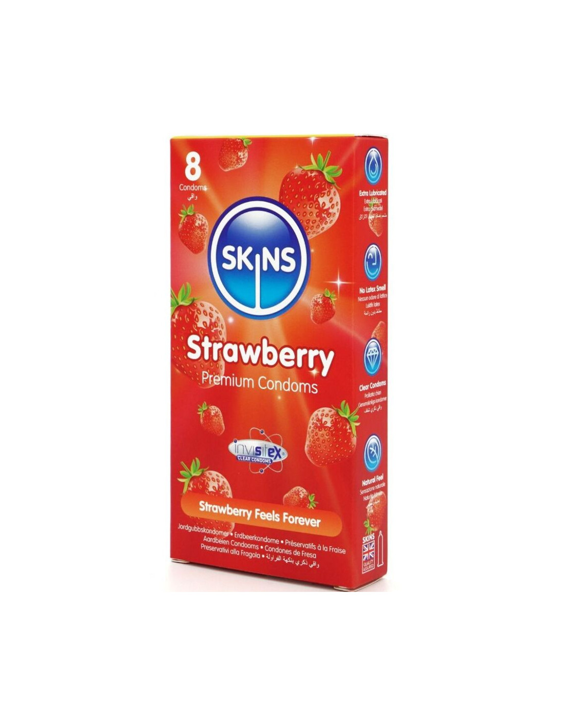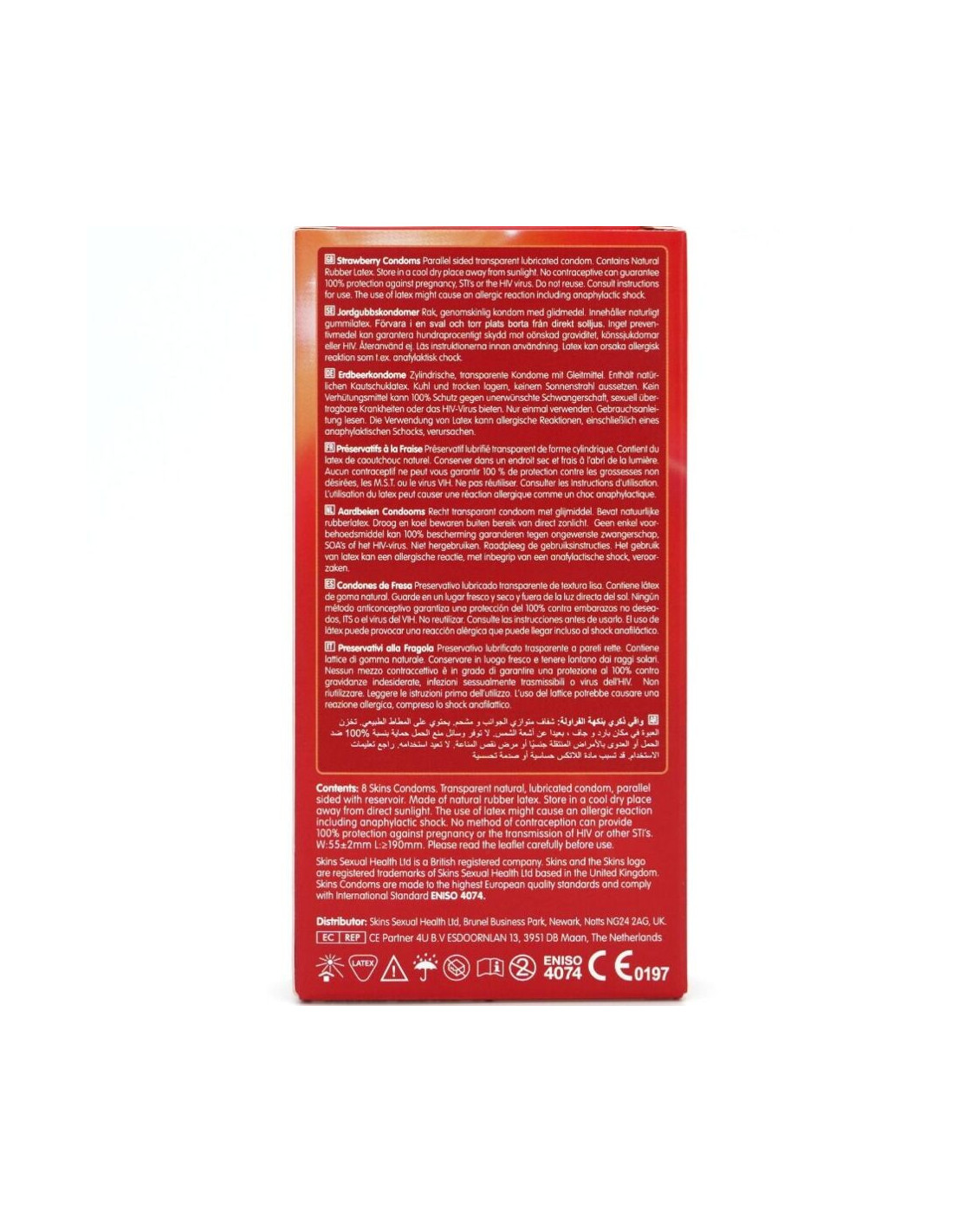 Introducing our new Strawberry 8-pack, featuring a sleek, ready-to-use design and up to 33% more condoms than the market leader. Add a classic fruity flavor to your product range with Skins Strawberry condoms. Made with premium natural latex for a sheer, natural feel, these condoms are designed to provide a second-skin feel without compromising strength or safety. Ideal for retailers looking to offer a popular and trusted flavor option for added intimacy and protection.