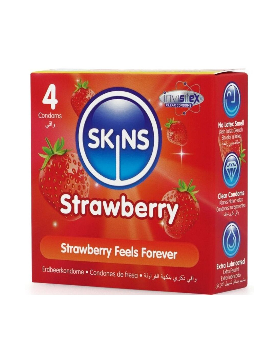 Introducing our new Strawberry 4-pack, featuring a sleek, ready-to-use design and up to 33% more condoms than the market leader. Add a classic fruity flavor to your product range with Skins Strawberry condoms. Made with premium natural latex for a sheer, natural feel, these condoms are designed to provide a second-skin feel without compromising strength or safety. Ideal for retailers looking to offer a popular and trusted flavor option for added intimacy and protection.