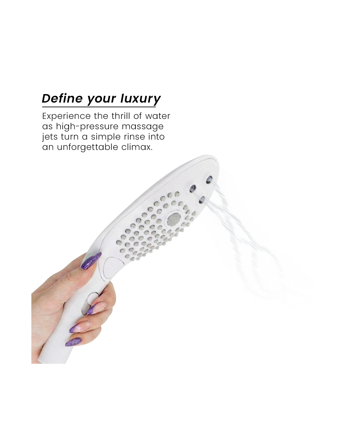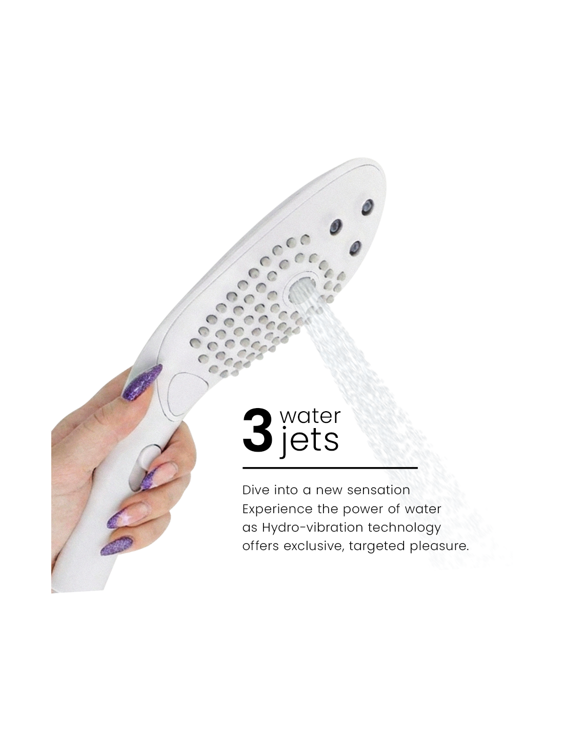 Unique 2-in-1 function – Wave is a premium shower head and a water-pressure clitoral massager in one: the only product of its kind.