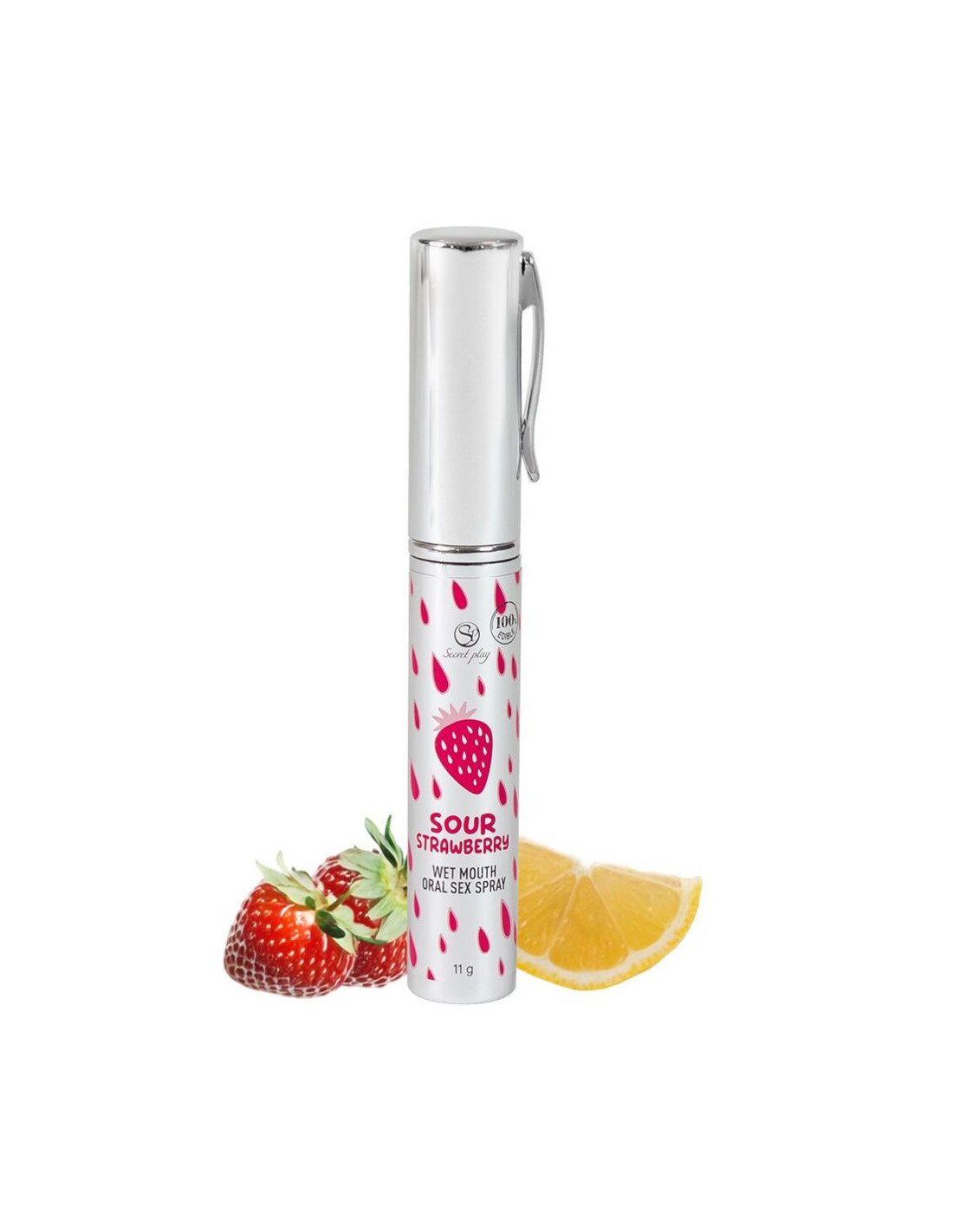 Strawberry-flavored mouth and throat spray that moisturizes your mouth, eliminating dry mouth and making oral sex a very pleasurable experience, as well as providing good breath. Discover new sensations by innovating with this oral and throat spray with an incredible sour strawberry flavor and make your oral sex an unforgettable experience, playing without limits and increasing arousal with your partner.