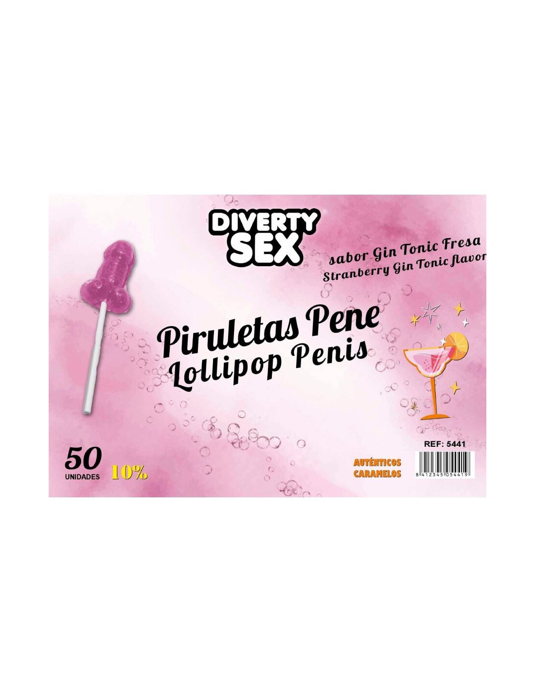 DIABLO GOLOSO - 50 PENIS LOLLIPOPS GIN TONIC STRAWBERRY FLAVOR 10 ALCOHOL
