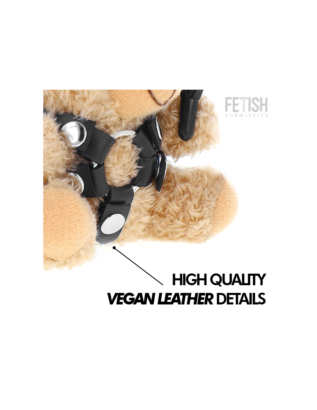 Each teddy bear is made from high-quality materials and features a look that ranges from cute to rebellious. Its details and accessories capture a provocative style, combining sweetness and daring attitude. The harnesses are made of soft leather and lace straps, fitting their petite figures impeccably. They wear masks that cover part of their faces, giving them a mysterious and charming air. The gags, in vibrant shades, add a bold and playful touch, while small chains wrap around their plush bodies, adding texture and a striking visual effect.