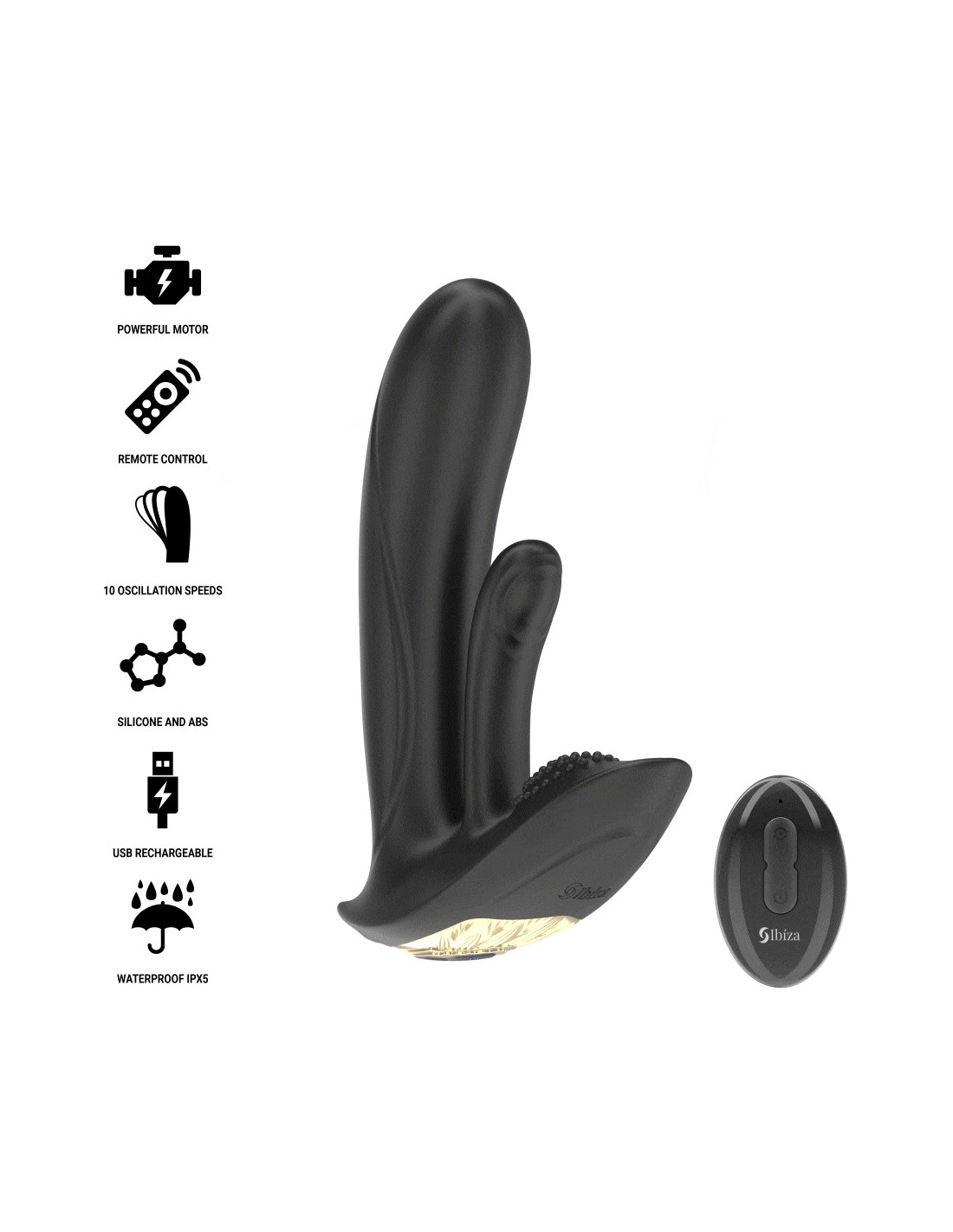 The IBIZA Remote Control Wearable G-Spot and Clitoral Stimulator Vibrator is the ideal device for those seeking a personalized, intense, and discreet experience. With two powerful motors, 10 vibration modes, 10 oscillation modes, and an ergonomic design that fits perfectly to your body, this vibrator provides simultaneous and complete stimulation, ideal for reaching new heights of pleasure. Its discreet design, remote control, and waterproof features make it a perfect accessory for both solo and couples use. Immerse yourself in a unique experience of pleasure with this innovative and versatile vibrator!
