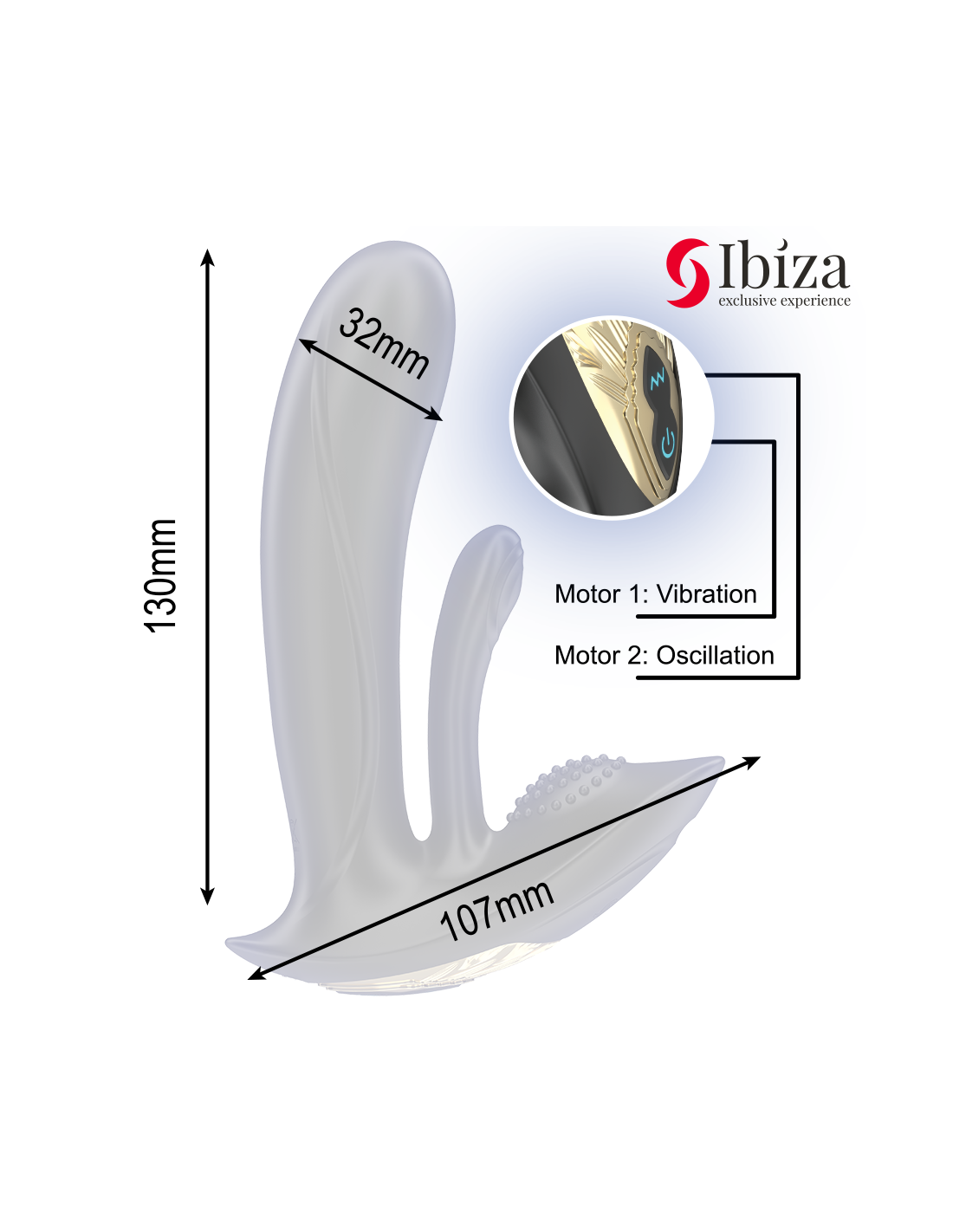 IBIZA TECHNOLOGYTake your pleasure experience to new heights with the IBIZA Remote Controlled G-Spot and Clitoral Stimulation Wearable Vibrator. Designed to provide precise and effective stimulation to both the G-spot and clitoris, this innovative vibrator is perfect for those seeking a discreet yet intense pleasure experience. Thanks to its ergonomic design and two powerful motors, you can enjoy simultaneous and personalized stimulation while maintaining complete control of the experience, all from the included remote control.