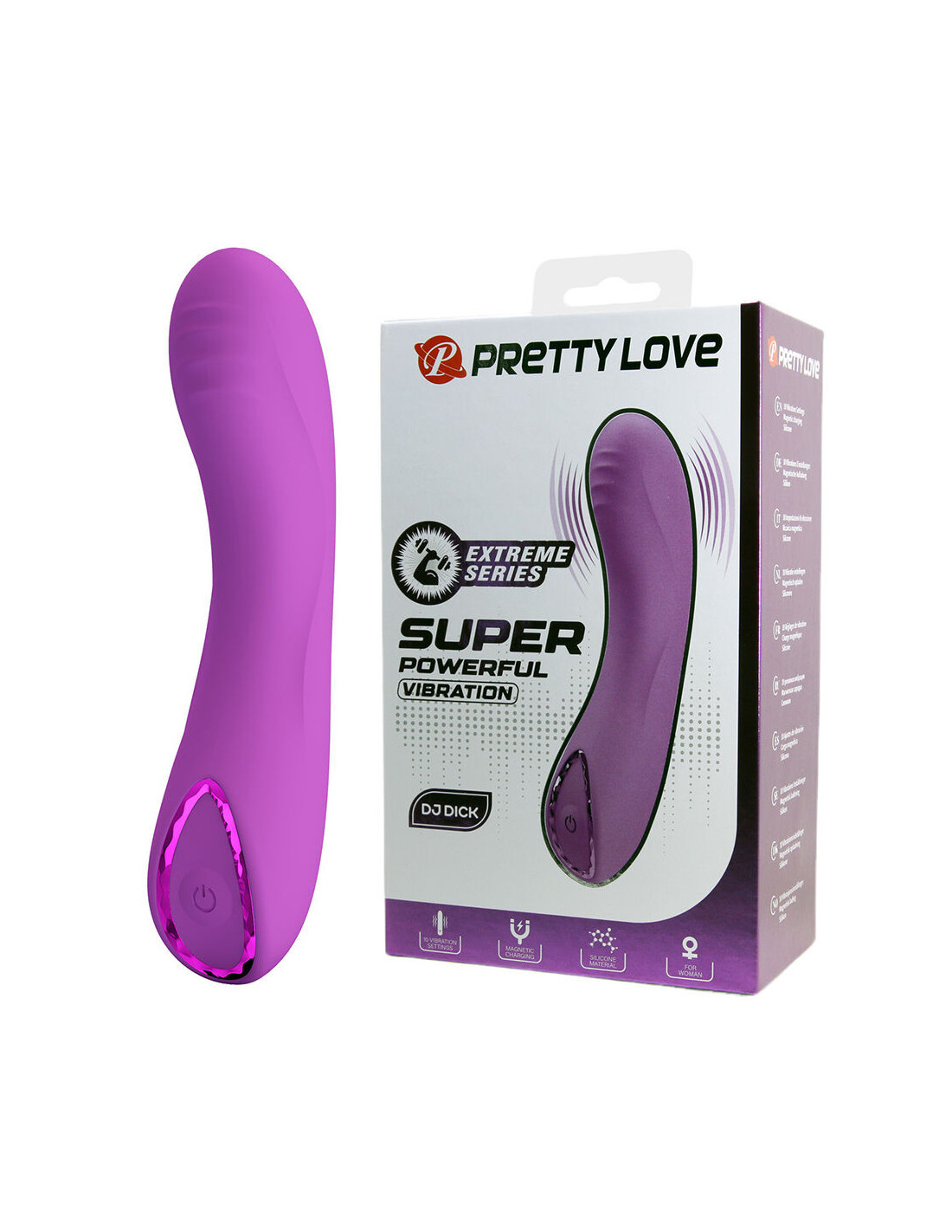 Elegant Pretty Love vibrator from the Extreme Series, presented in a vibrant purple color and designed to stand out with its sophisticated shiny decorative ring.