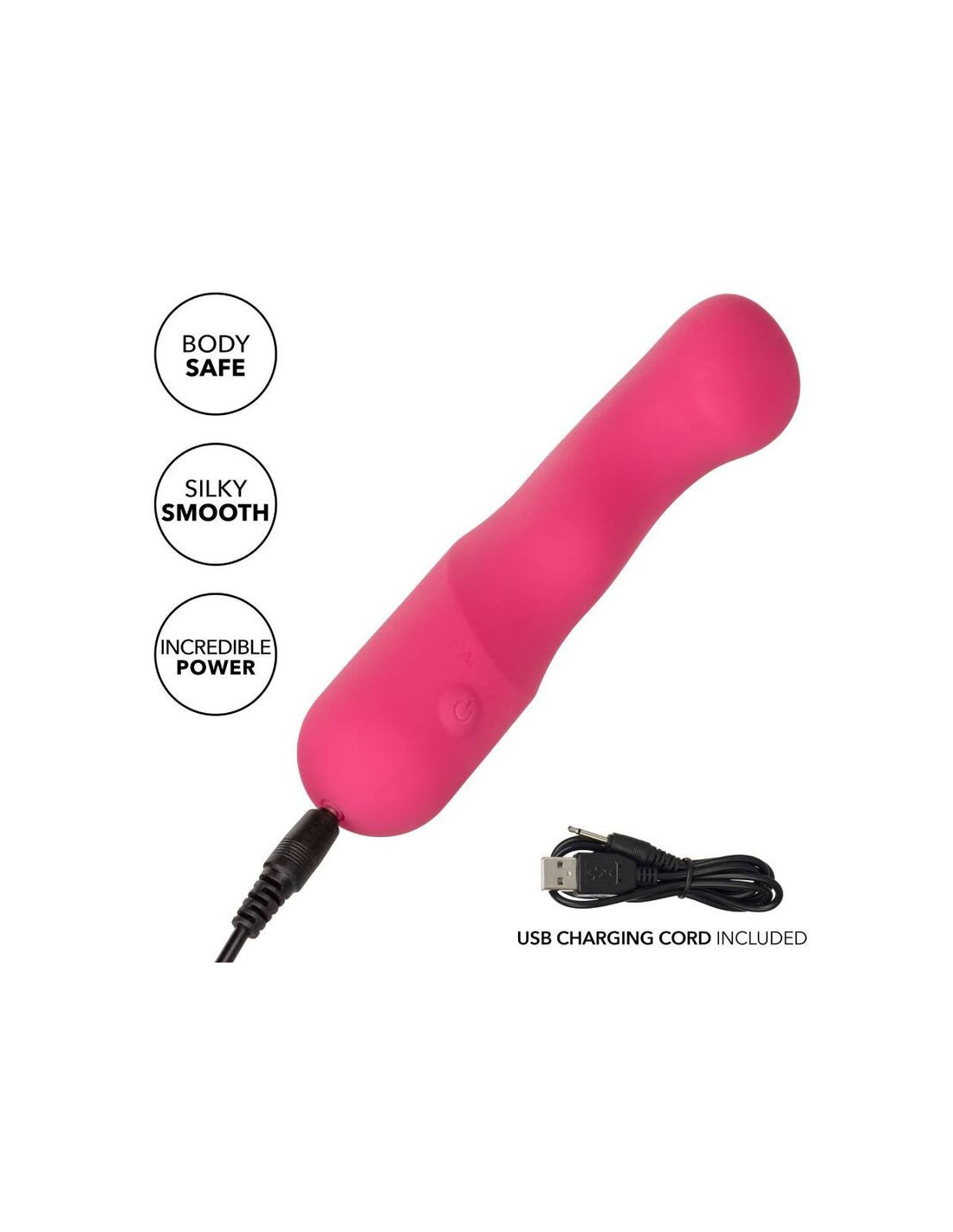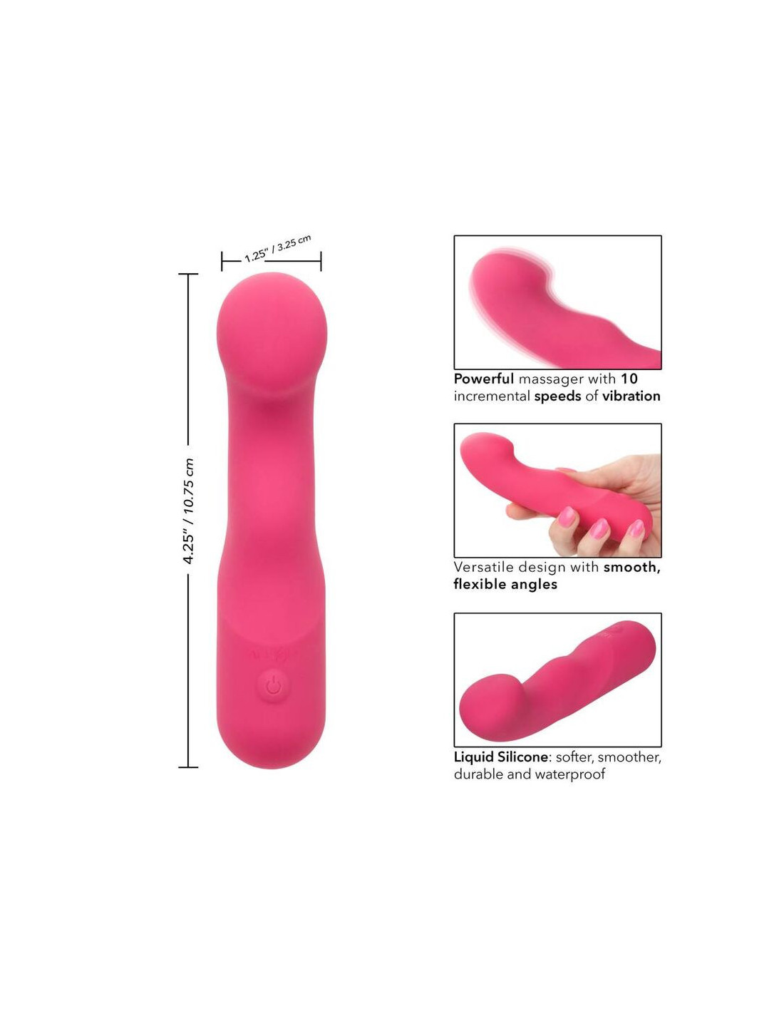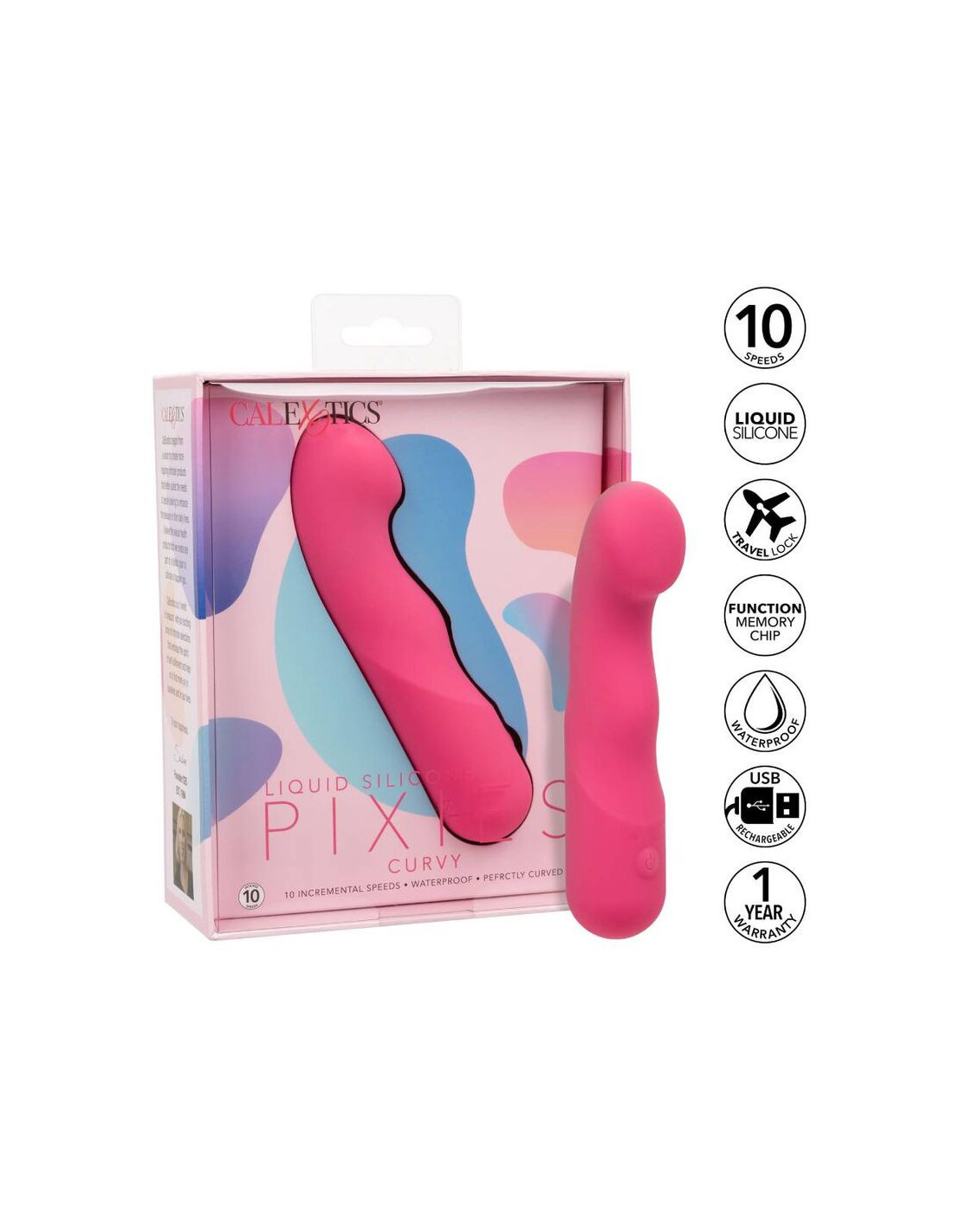 The Liquid Silicone Pixies Curvy is designed to deliver knee-shaking sensation to your favorite pleasure points. The flexible angled tip, dual sided design and 10 thrilling speeds of vibrations make this the perfect teasing travel companion. The curved massager fits in your hand to let you deliver pinpoint tantalization and thrill with contoured vibrations. Get playful with each increase of the 10 incremental speeds of vibration with the easy-touch control button. Effortlessly control pure pleasure with an easy-touch silicone button and hold for 3 seconds to turn on or off. The ultra-plush liquid silicone and uniquely flexible tip are great for exploring sensual sweet spots and intimate pleasure points with ease. With a smooth shape and supple surface, youll be able to indulge in thrilling vibrations from any angle you desire. Use the smooth single button control to enjoy up to 110 minutes of vibrating pleasure. Charge up your passion in only 1.5 hours by plugging the provided USB cable into the self-sealing charging port on the base of the massager. The slim massagers discreet size makes it the perfect travel companion, letting you embrace radiating pleasure wherever your fantasies take you.