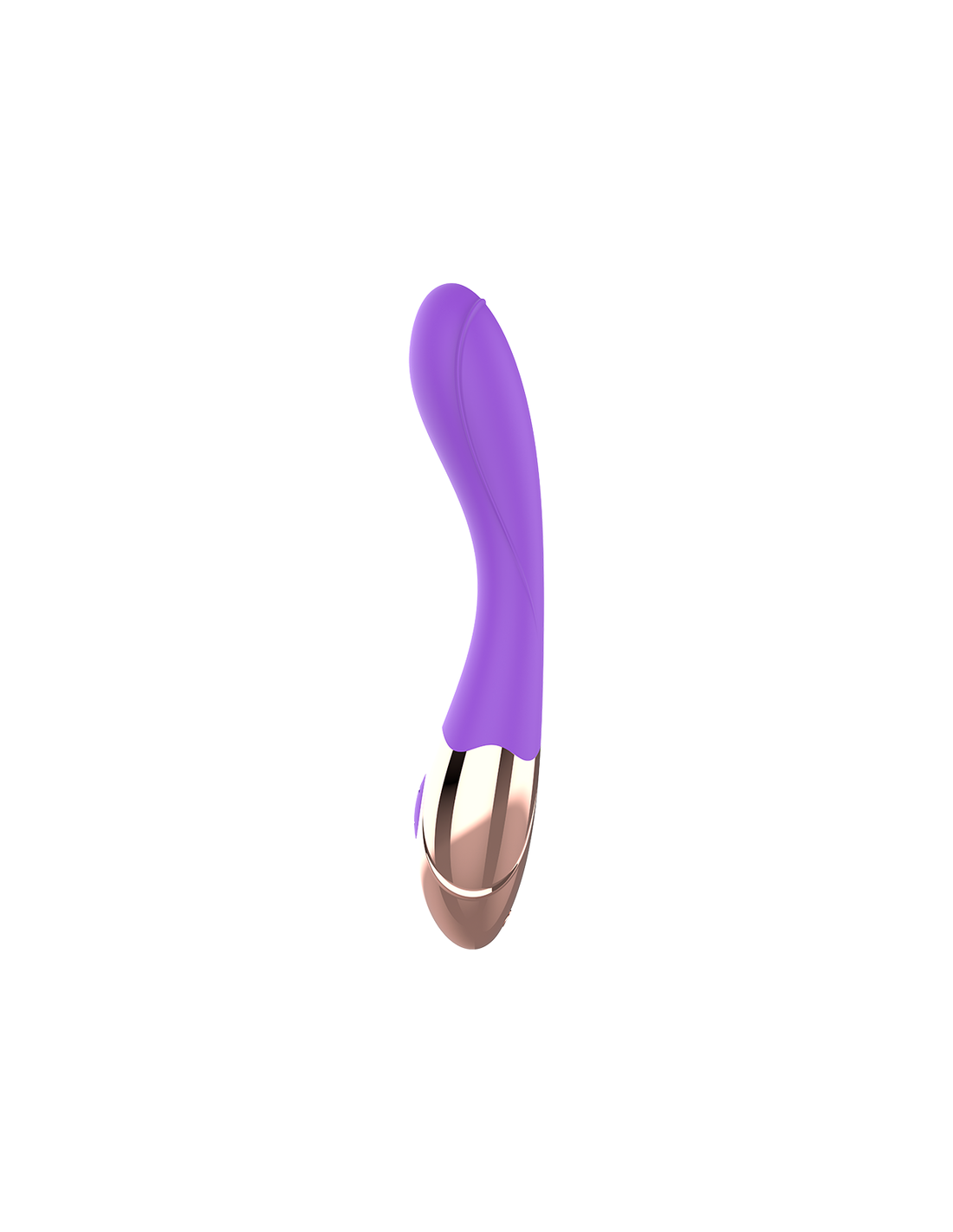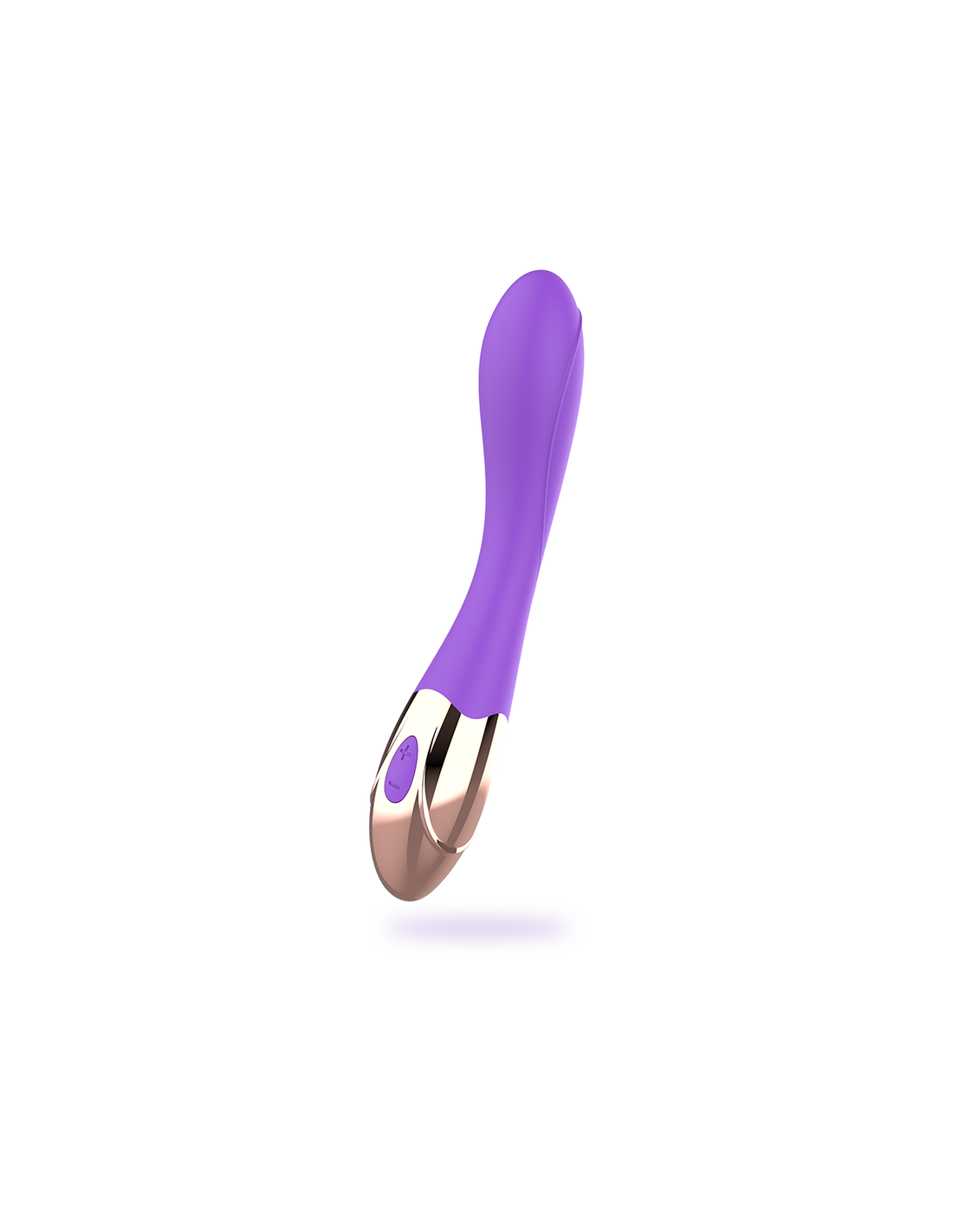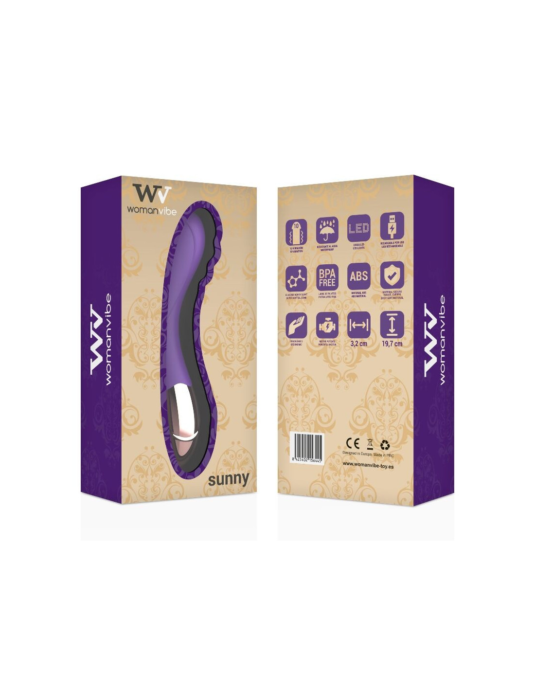 Womanvibe Sunny, the G-Spot vibrator has a unique design that makes it a real treat for the eyes. Curved design for G-spot stimulation and relief that provides additional pleasure. Completely elegant in Gold and Lilac color, this rechargeable vibrator is made of soft and silky silicone that respects the environment, free of phalates, and respectful of your skin.