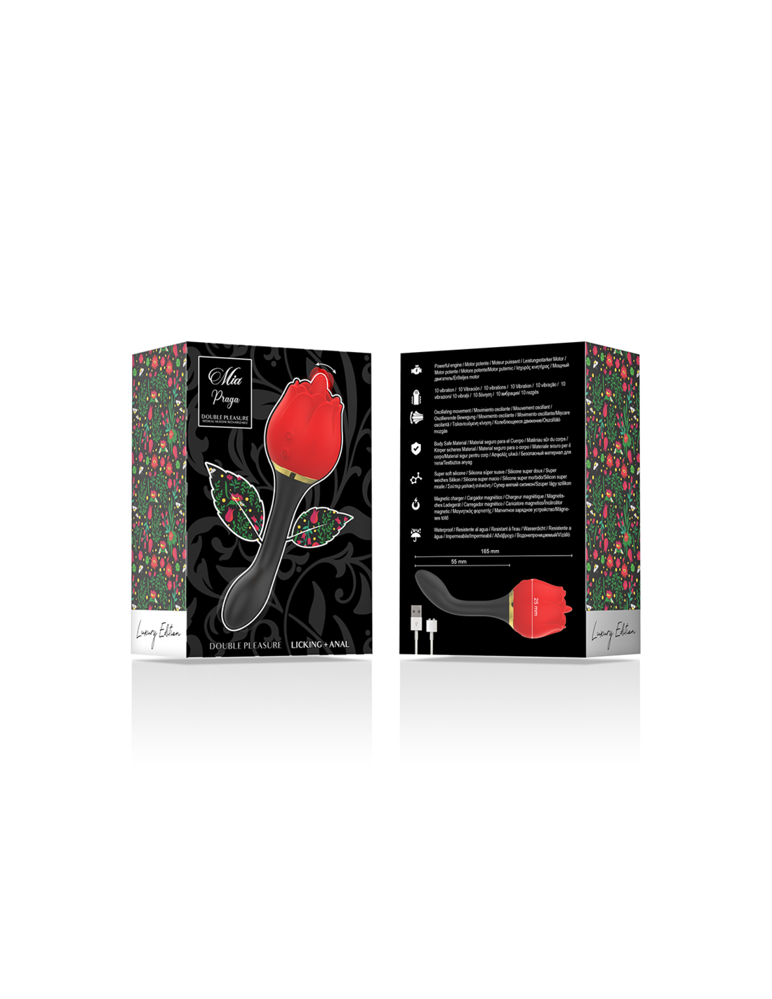 Ways to play; Place the silicone rose securely in the palm of your hand. Place MIA DOUBLE PLEASURE on your clitoris or other erogenous zones and enjoy the deep vibrations. Explore different environments and positions to tailor your experience. It is perfect to stimulate the clitoris and also use the vibrating handle for the anal area. Double and powerful stimulation.