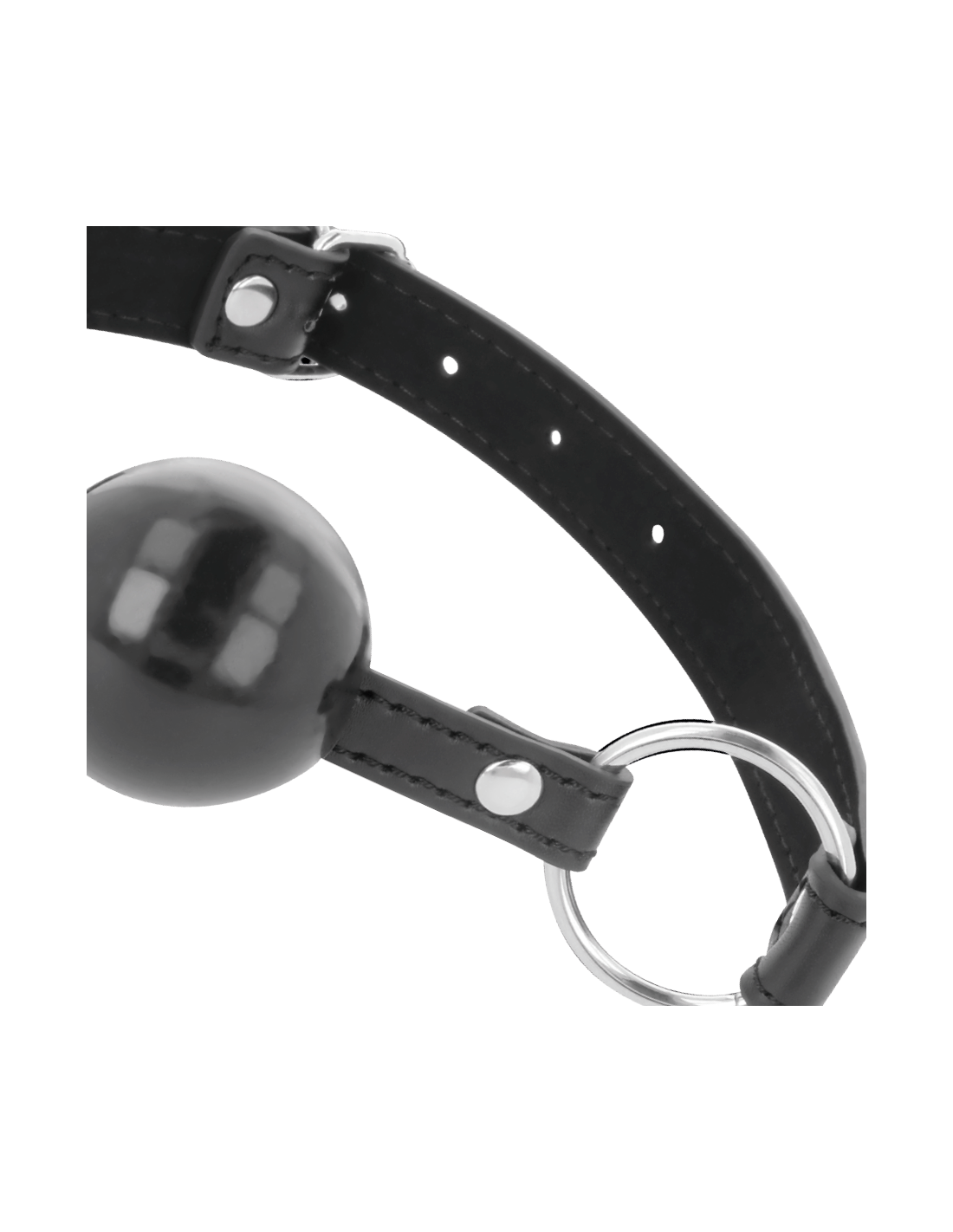 This gag has quality leather straps and features elegant stitching along the straps. The strap has holes to adjust the length. One size fits all measurements.