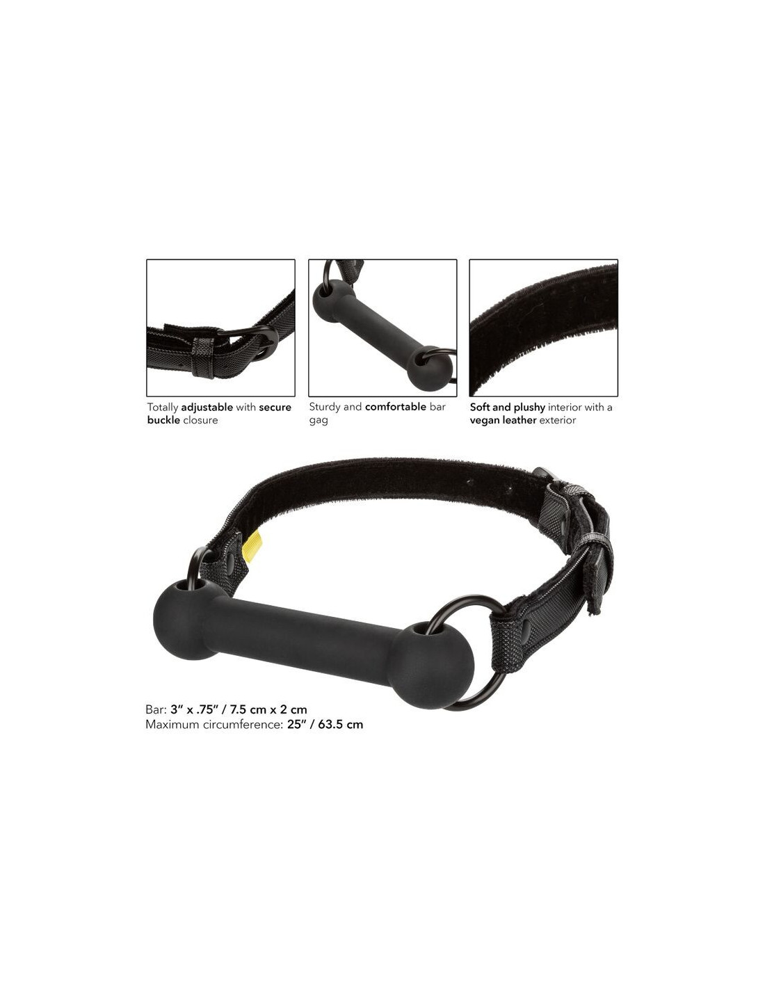 - Firm and pliable, body-safe Silicone bar gag | Fully adjustable with secure buckle closure | Soft and plushy interior with a vegan leather exterior | Double padded, double stitched | Functional, durable and textured design
