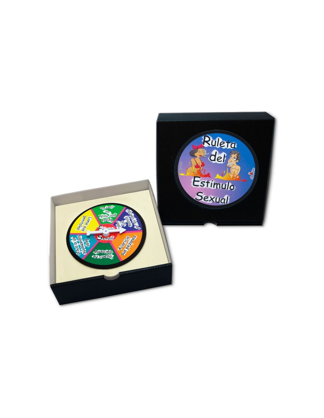 It is a roulette game for sexual stimulation that goes in a VERY FUN CARDBOARD BOX. The game consists of turning the roulette with force and following the instructions that are indicated to have a good time fun.