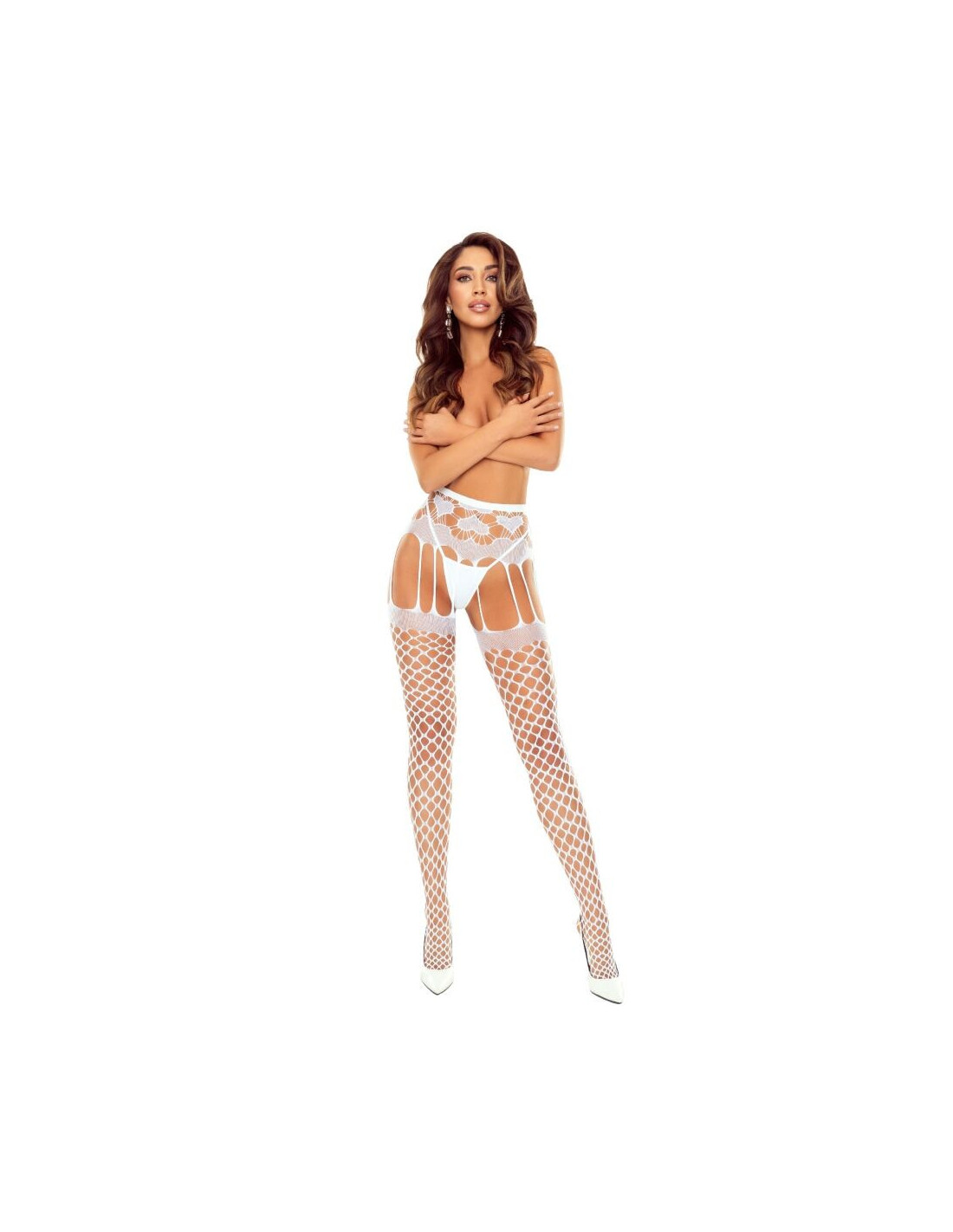 This model is presented in an elegant white color, the quintessential classic tone for a sophisticated and always sexy look, ideal for highlighting the silhouette with a touch of mystery and distinction.