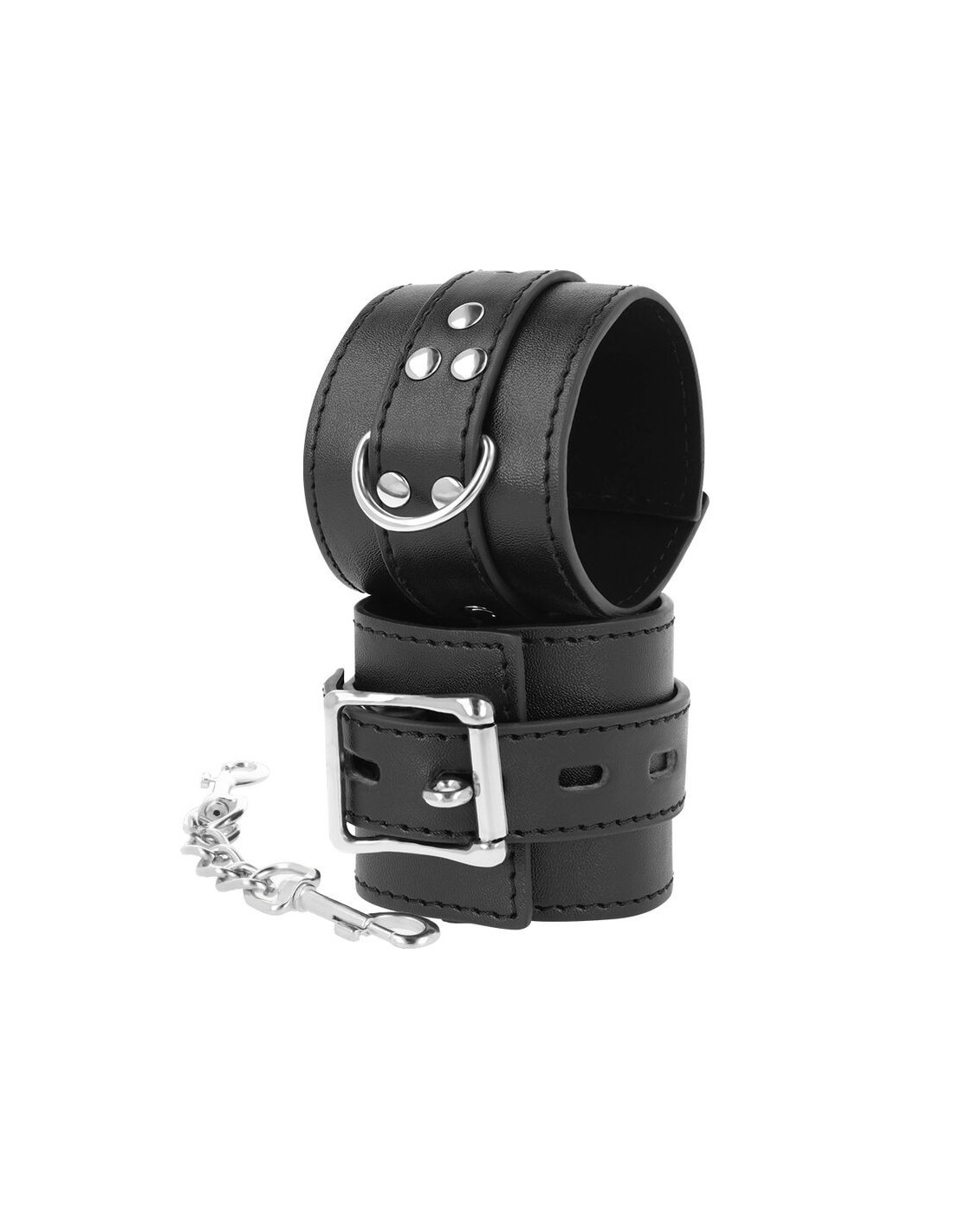 We love these faux leather handcuffs with strong chains and sturdy metal buckles.
