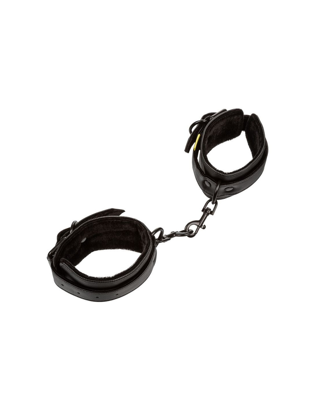 These wrist cuffs can be bound together with a fully-flexible swivel design, maximizing restraint while minimizing discomfort and giving the wearer full dexterity. The cuffs are held together by detachable universal clasps, allowing you to attach these cuffs together or to any other surface of your choosing.