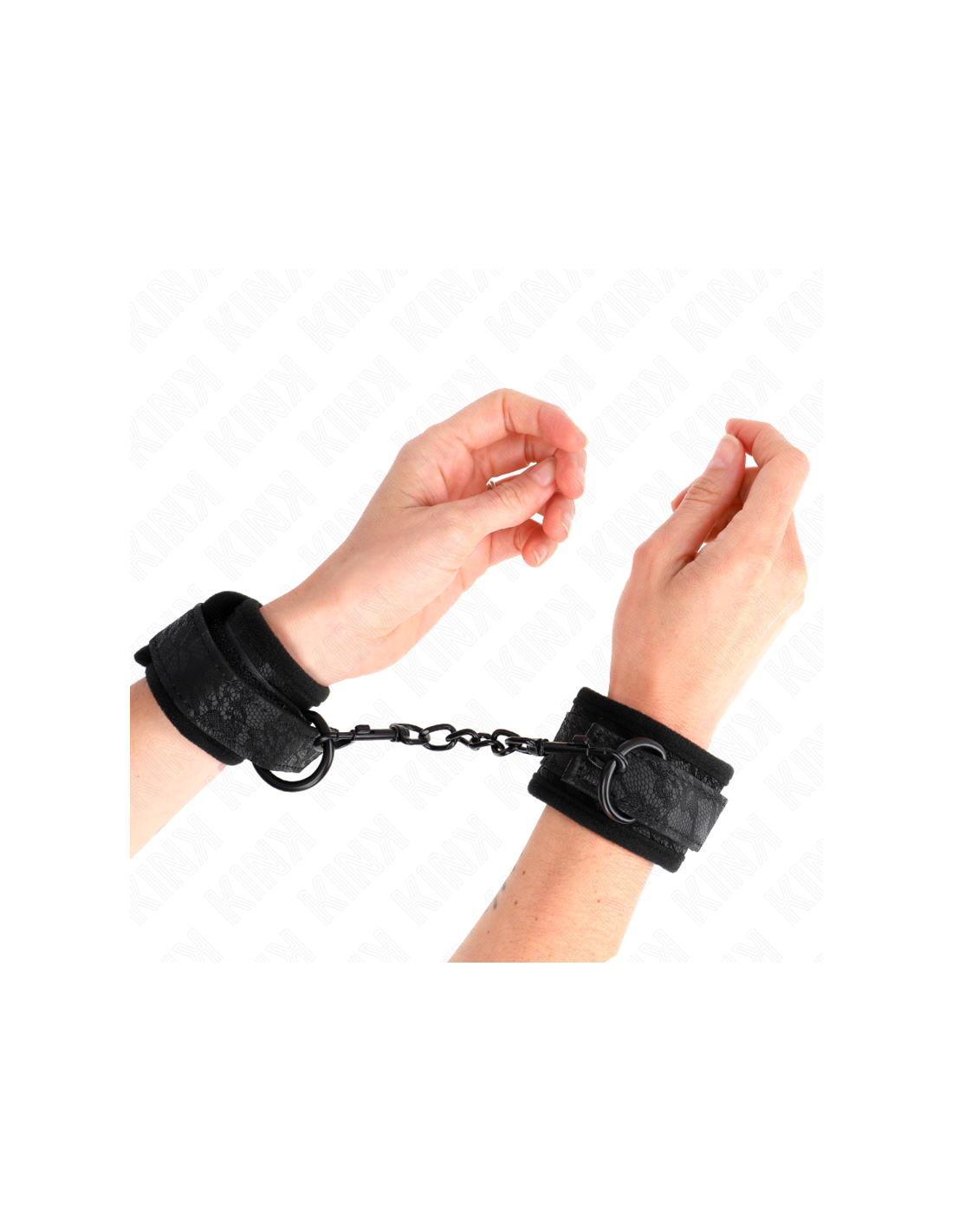 KINK - DARK LACE COVERED WRIST CUFFS NEOPRENE ADJUSTABLE BLACK 20-29 CM X 5 CM