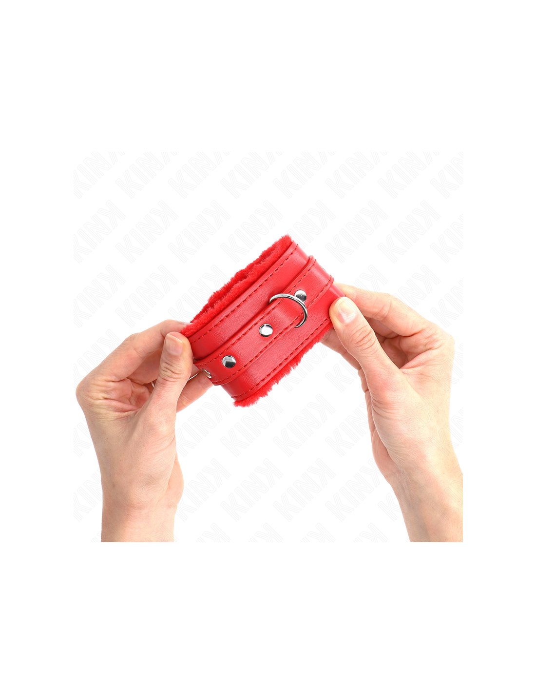 KINK - PREMIUM FUR LINED WRIST RESTRAINTS RED WITH RED BELT ADJUSTABLE 17-29 CM X 6 CM