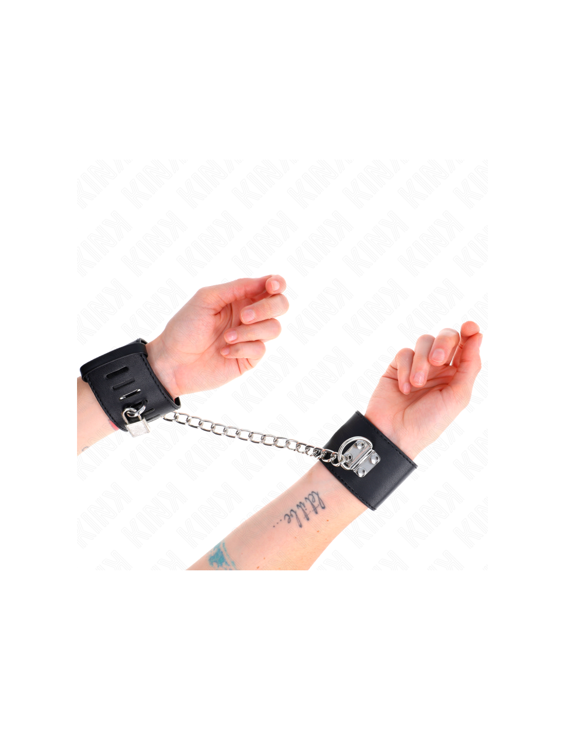 KINK - FIXED WRIST RESTRAINTS WITH CHAIN 30 CM AND PADLOCK CLOSURE BLACK ADJUSTABLE 16-23 CM X 5.5 CM