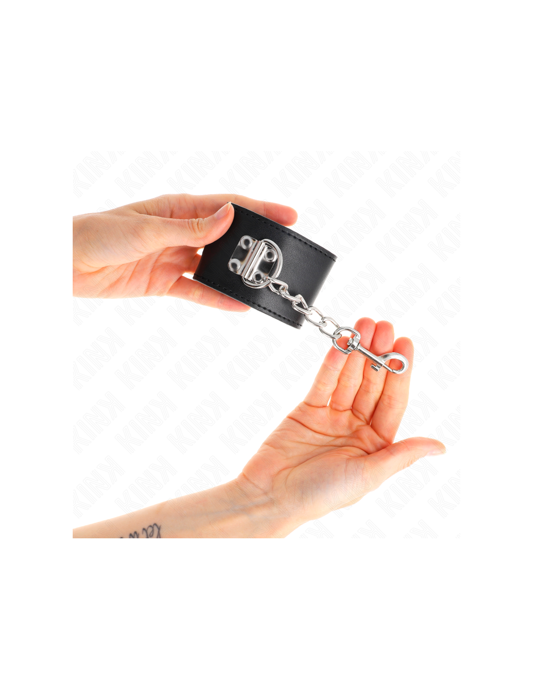 - Rings and D-Rings: KINK wristbands are designed with high-resistance rings and D-rings, allowing easy connection to chains, ropes or other restraint equipment. These components are designed to withstand stress and ensure safe and reliable control.