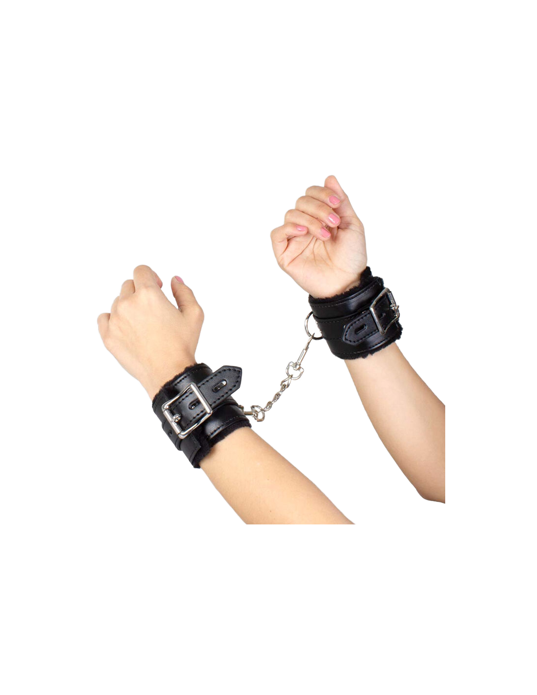 These lightly padded cuffs combine faux leather with silver chains to add style and versatility to your bondage adventures. The cuffs are plush lined and very sensual as well as totally comfortable and non-intimidating. Its strong buckles ensure a secure restraint in different positions while the quick release carabineer ensures your safety. Being tied up and enslaved by your partner’s kisses has never been so hot!
