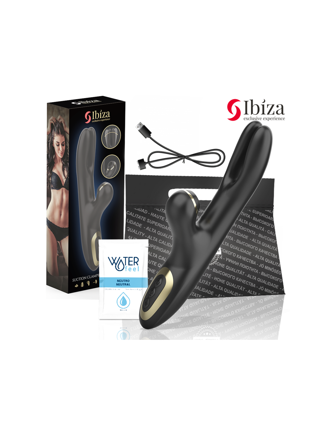 If we talk about comfort in transport and discretion, Ibiza begins by innovating, since we also consider that it is a very important part of the experience of buying an erotic toy. When you buy a toy from Ibiza, you will receive a premium box with a black transport bag inside, where you will find the toy, a charger and a single-dose sachet of Waterfeel Neutral lubricant so that the customer's first experience is as pleasant as possible, and being able to take the toy discreetly wherever you want.