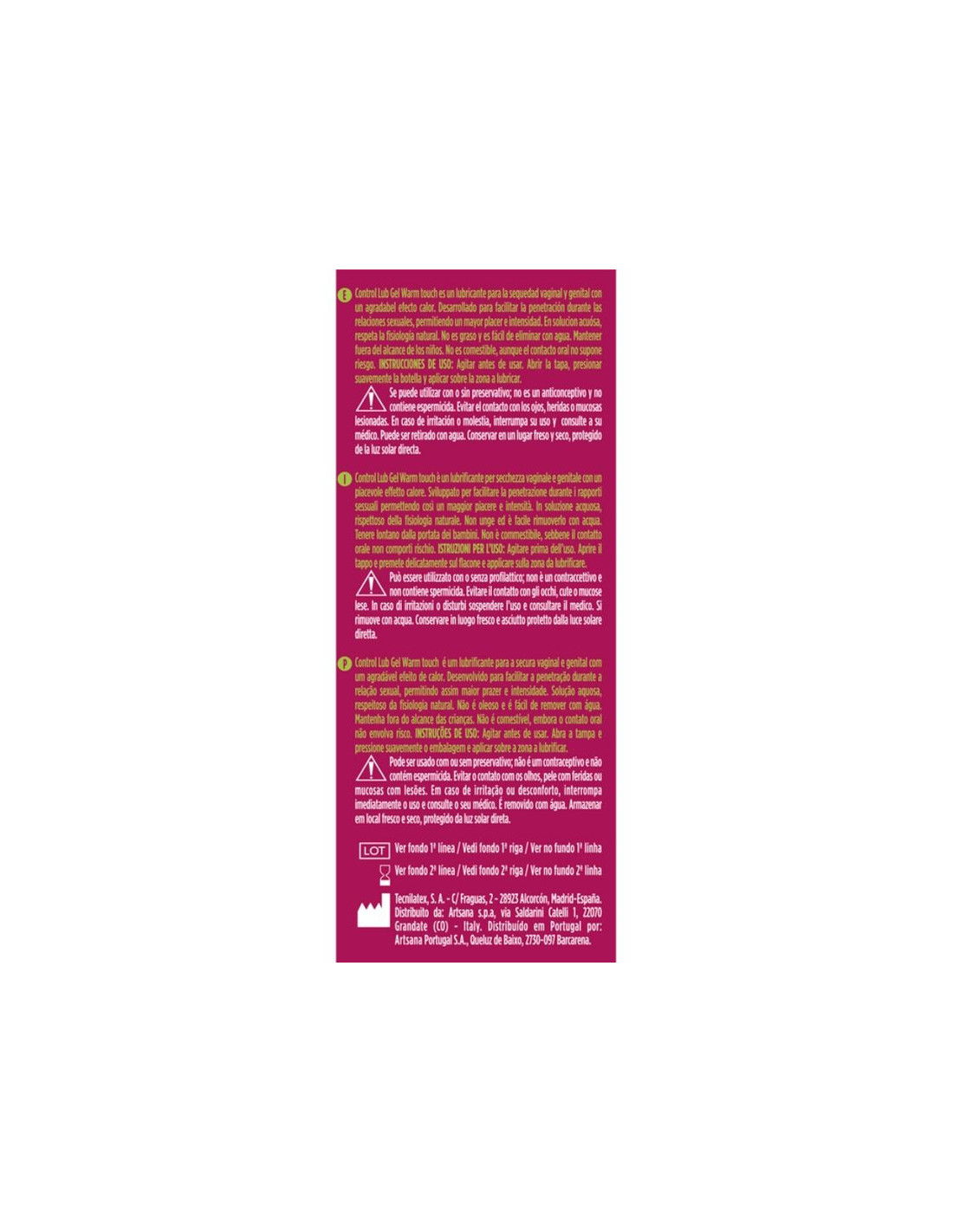 Control Lub Gel Warm Touch is a lubricant for vaginal and genital dryness with a pleasant heat effect developed to facilitate penetration during sexual relations, allowing greater pleasure and intensity. Water-based, respects natural physiology. It is not greasy and is easy to remove with water