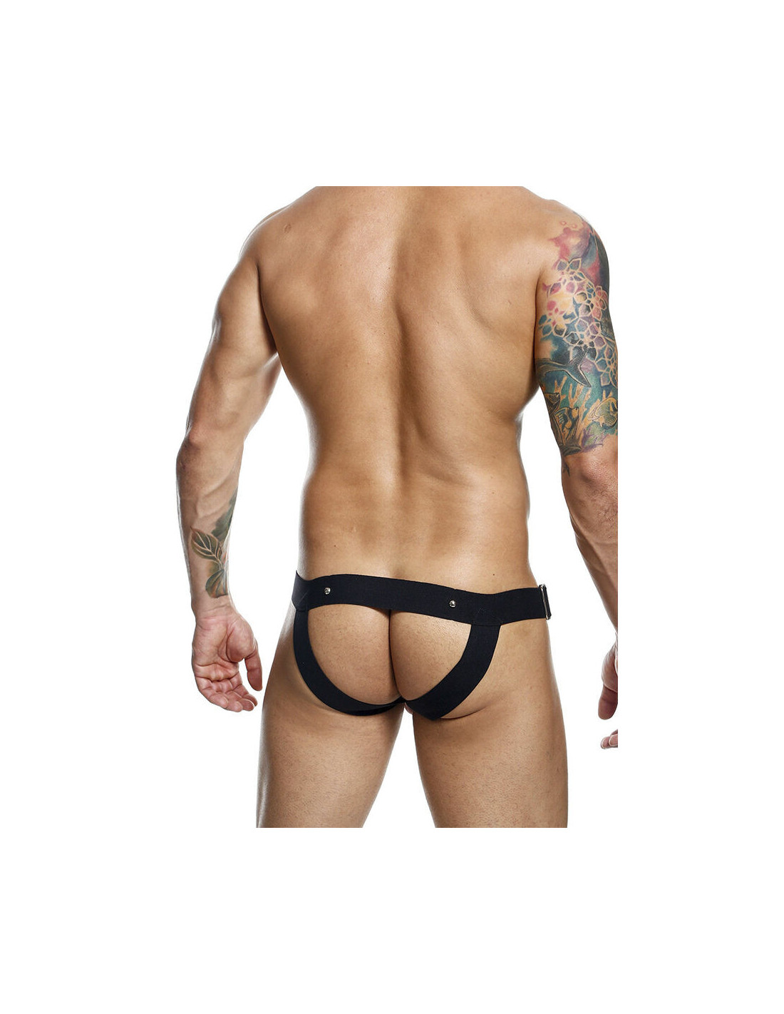 This high-quality Cockring Jockstrap boasts wide straps to the front that sit at the hips and provide a comfortable fit. Metal studs add that extra dose of interest, whilst an open buttocks offers a unique look. You could even wear it as underwear for that seamless look beneath tight clothing.