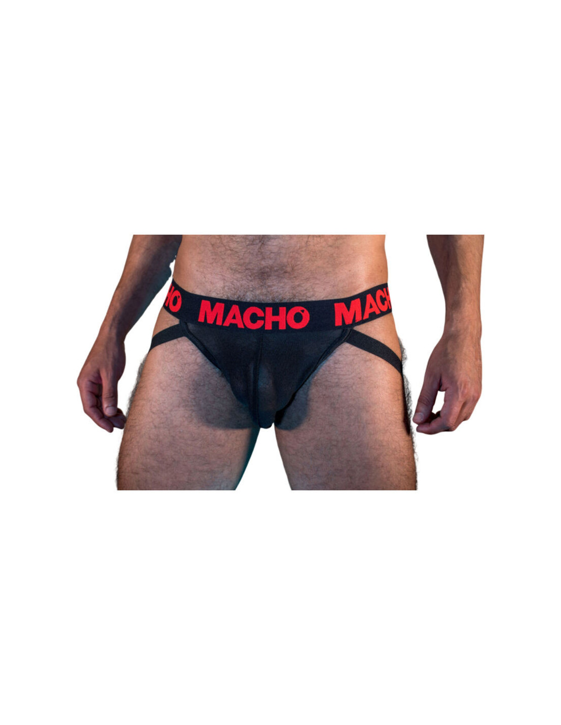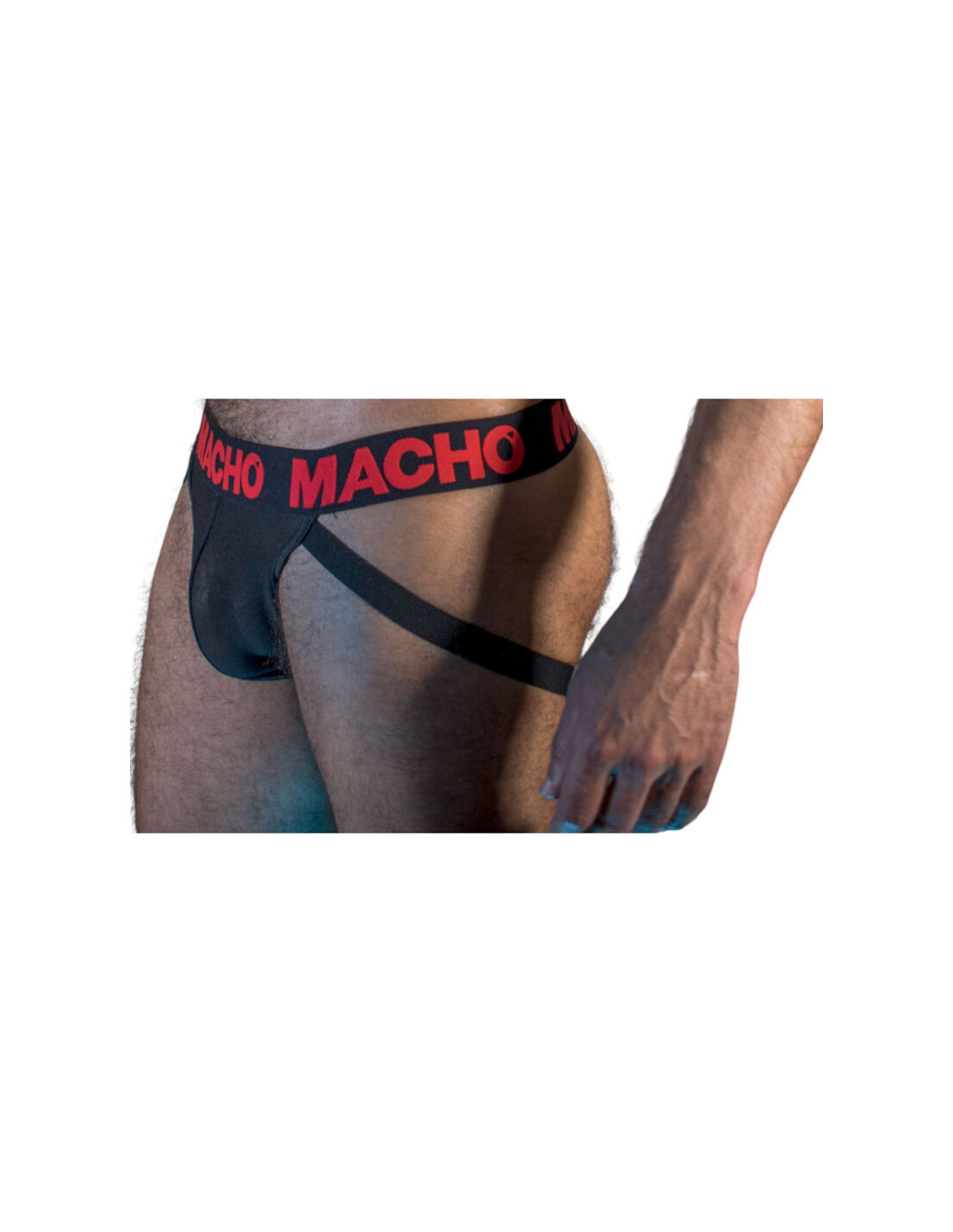 A JOCK black and red MX26X2 semi-transparent jockstrap with elastic fabric is an underwear item designed to both provide support and add a touch of sensuality and style to anyone's intimate clothing. This jockstrap combines the elegance of black with the passion of red in a design that is not only functional but also visually striking.