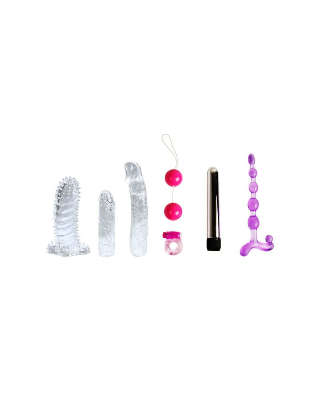 Its silver vibrator with its covers will satisfy you deeply, try its translucent dildo to get real fun. Place the textured cock ring over your penis and rub it against your partner's clitoris so they can enjoy the rhythm of its vibrations. The graduated anal chain will provide you with different fun so you can experiment both anally and vaginally.