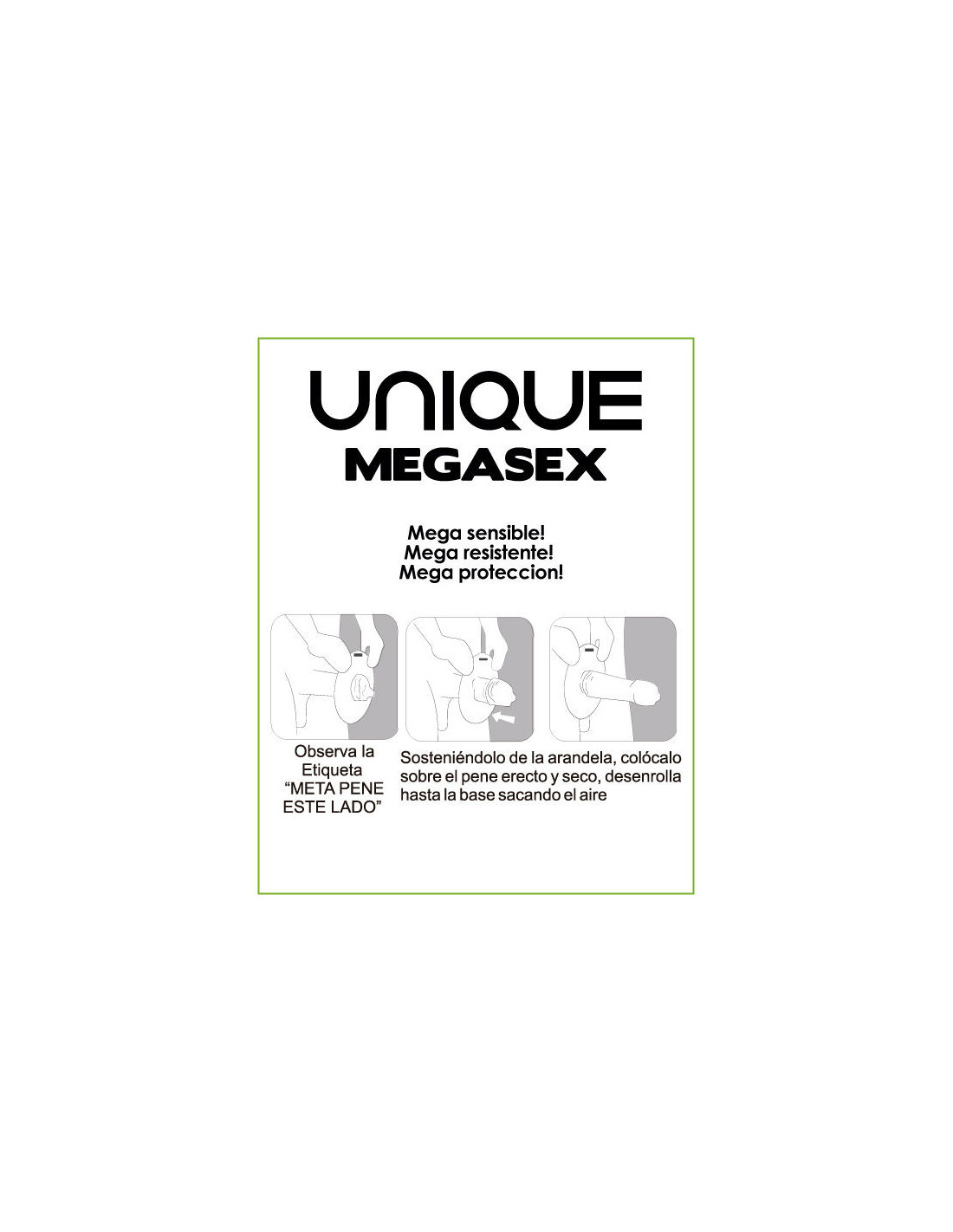 The MEGASEX condoms were initially developed to be economical. Designed to be used on either side, each packet includes lubricant ULTRALUB, to apply at the time of use. MEGASEX , like all Unique Condoms, can also be used with any lubricant.
