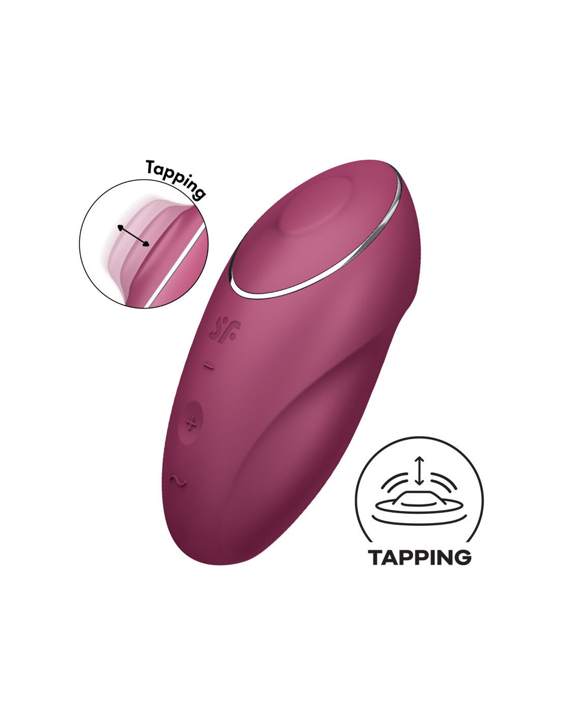 What does this device include? This beautiful Satisfyer lay-on vibrator offers two functions to guarantee unforgettable moments. The SatisfyerTap & Climax 1is a lay-on vibrator that gently vibrates and taps the clitoris to enjoy a new type of pleasure. Its made of body-safe silicone and ergonomically shaped so its super comfortable and soft in the hand and on hot spots.